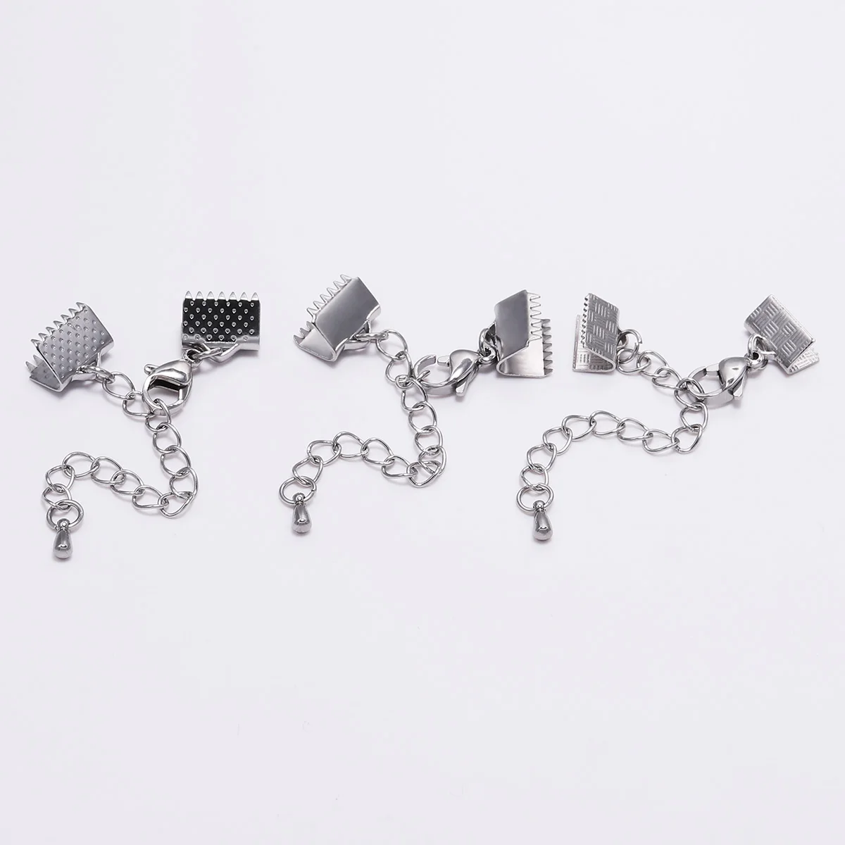 5 шт./лот, текстурированные колпачки из нержавеющей стали, обжимные застежки, цепочка-удлинитель для плоского кожаного шнура, соединитель для изготовления ювелирных изделий