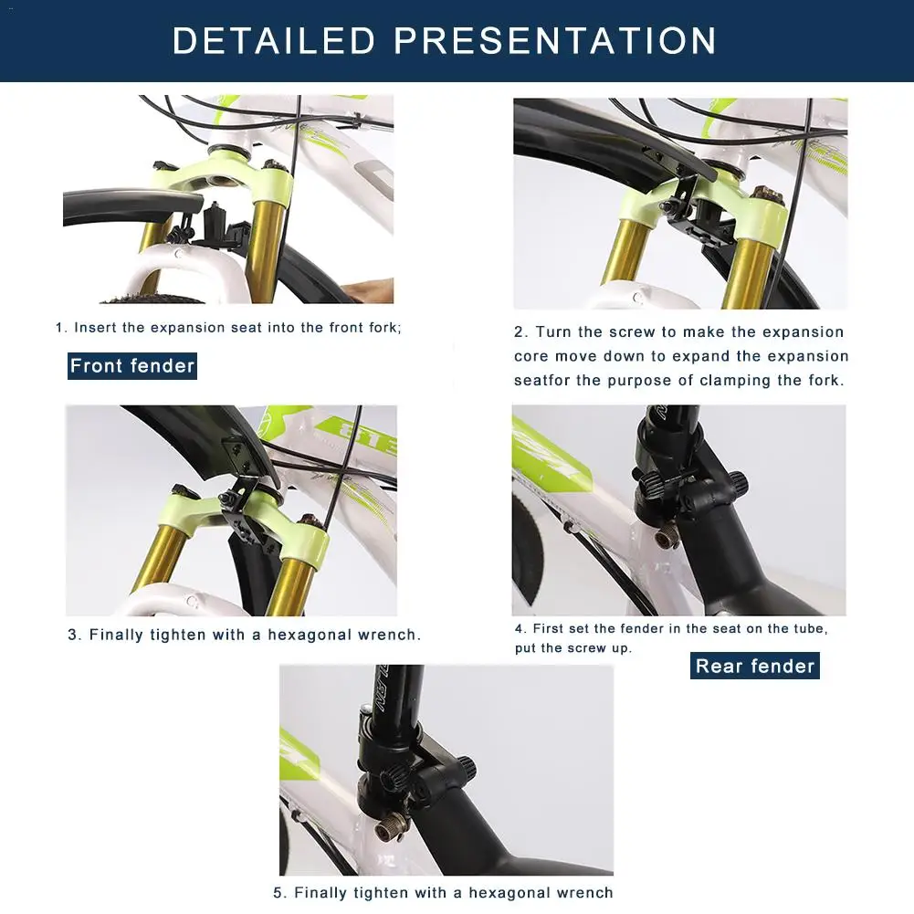 Простая установка: Простая установка для удовлетворения дождливой погоды. Можно установить в любое время. Крыло износостойкое и функциональное. Вам нужно всего несколько минут, чтобы получить велосипед, который может бегать под дождем.