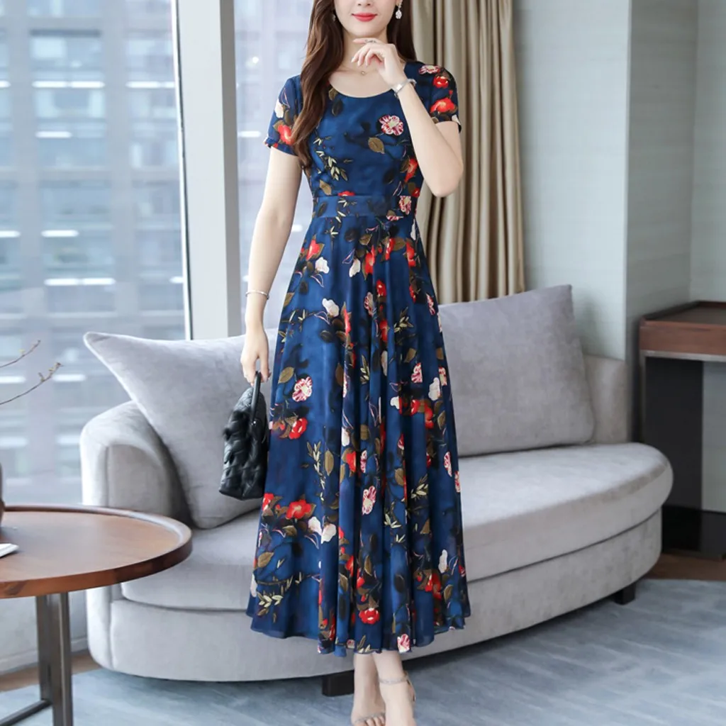 Женское модное летнее милое пляжное платье до середины икры с коротким рукавом и принтом