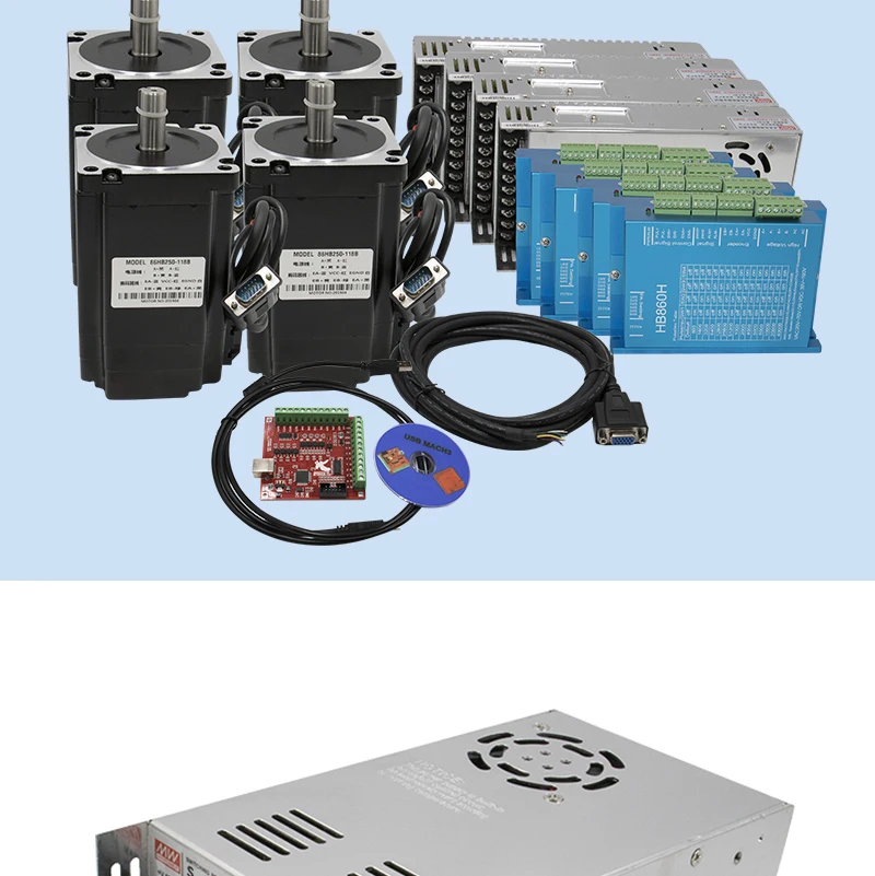 4 шт. 4,5/8,5/12нм мотор сервопривода 4 шт. HBS860H драйвер 4 шт. 400W60V источник питания 4 шт. 3 м энкодер кабели 1 комплект mach3 плата контроллера