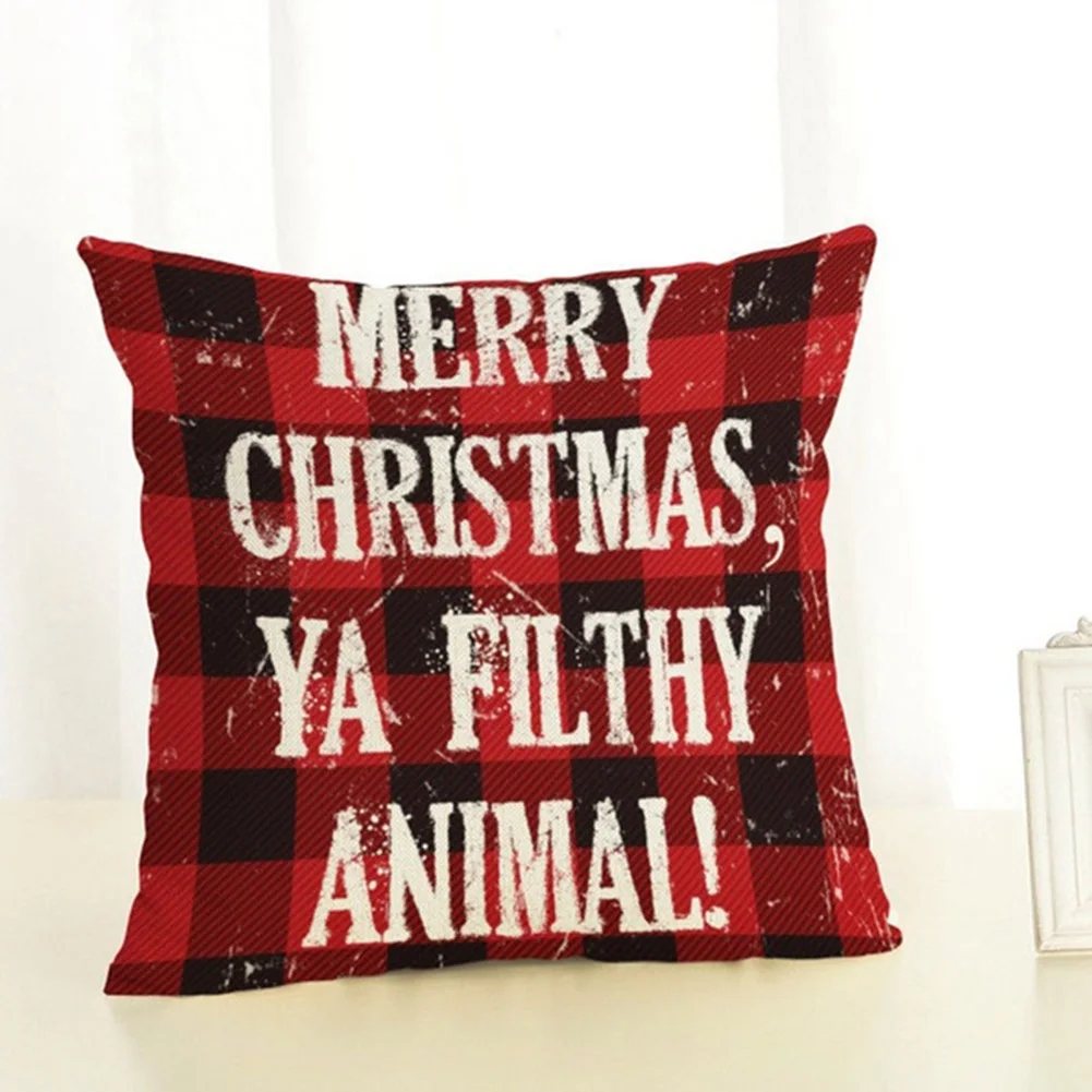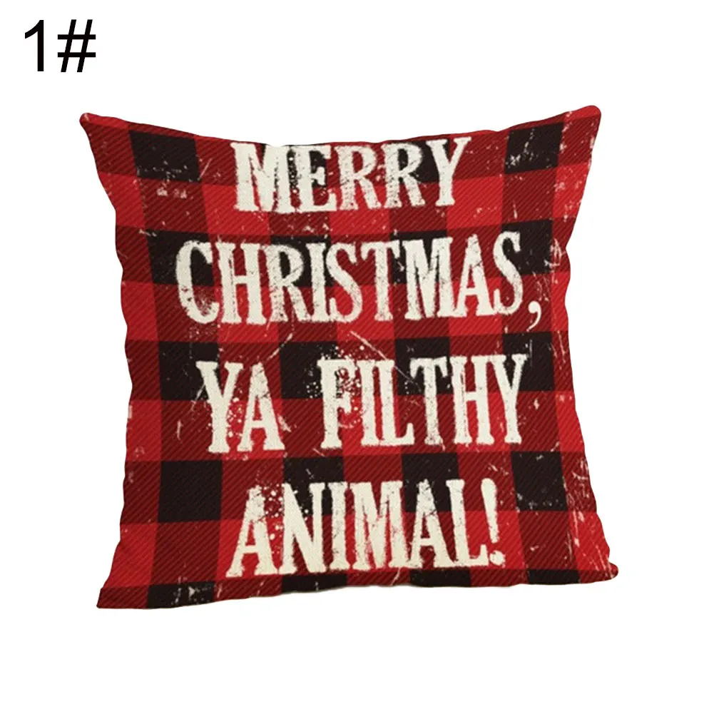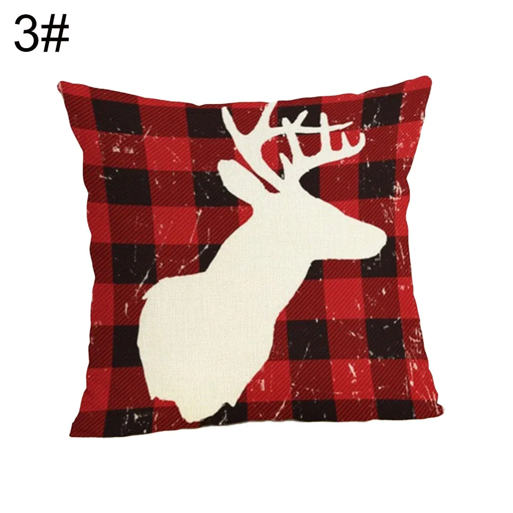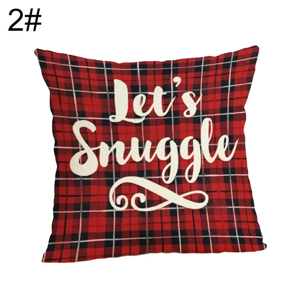 Plaid Merry Christmas Pillow Protective Case Cushion Cover Home Sofa Bed Decor