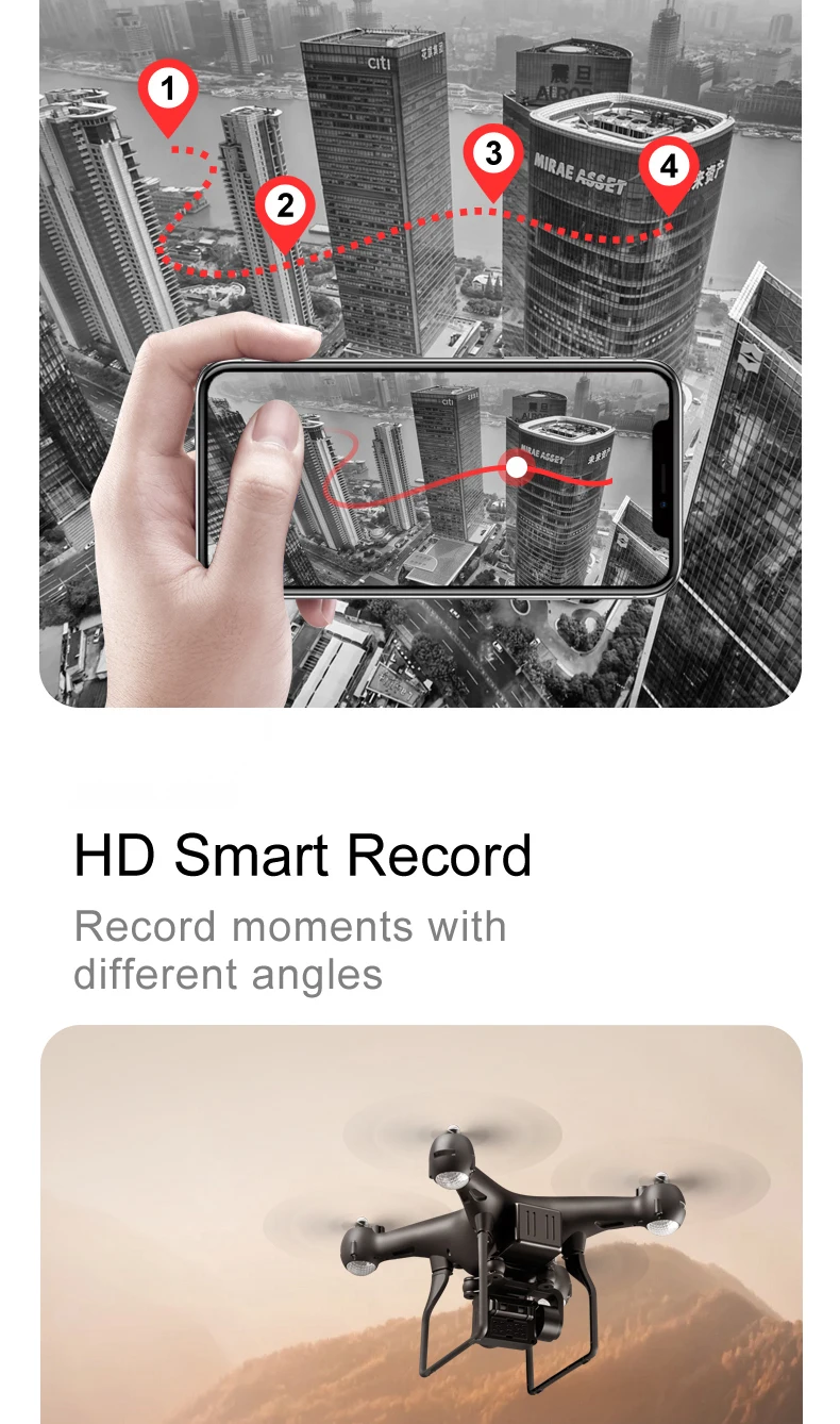 -Трек полета, вы можете нарисовать трек полета, который вы хотите на телефоне, и Квадрокоптер будет лететь линии, которую вы живопись.