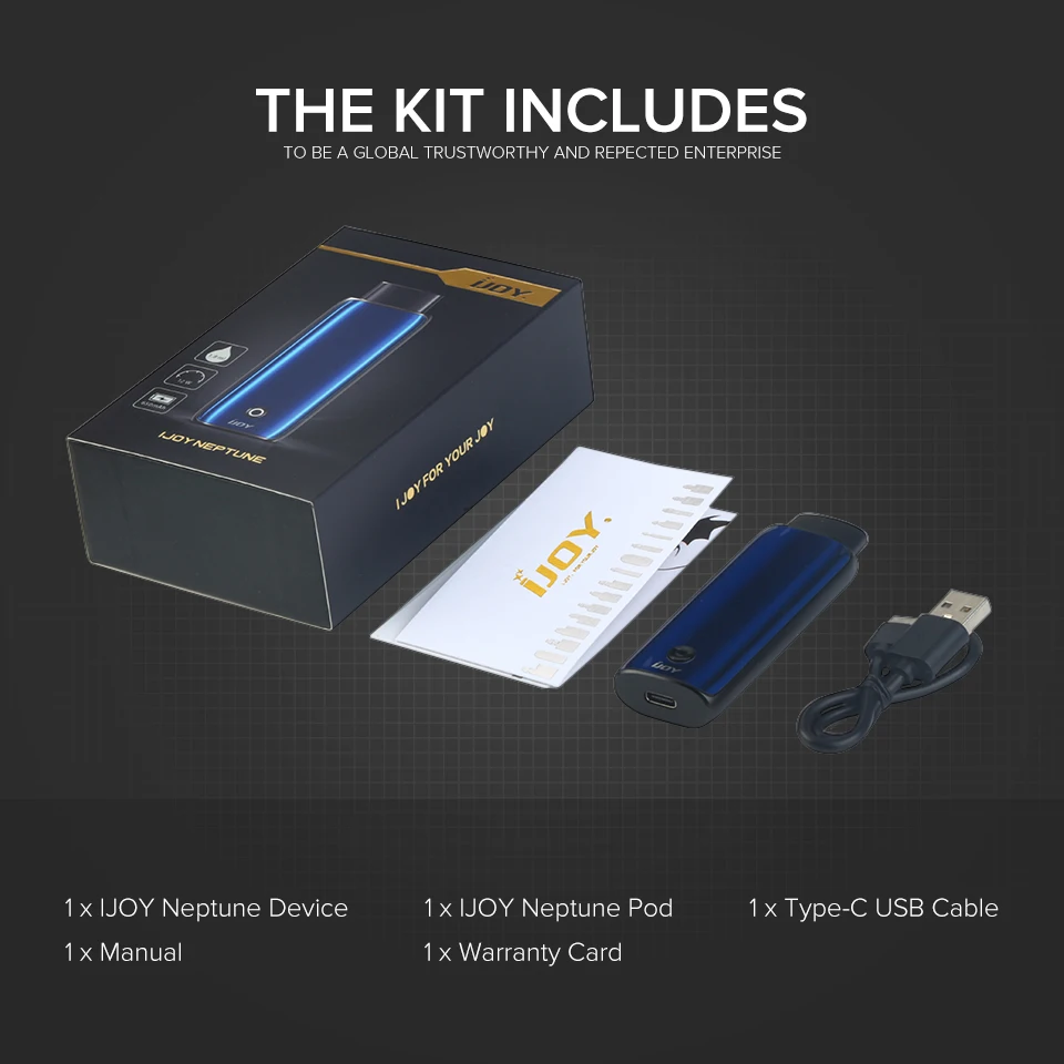 1 х IJOY комплект Нептуна 1 х IJOY Neptune Pod 1 кабель USB type-C Руководство пользователя-1 шт.; 1 х гарантийный талон
