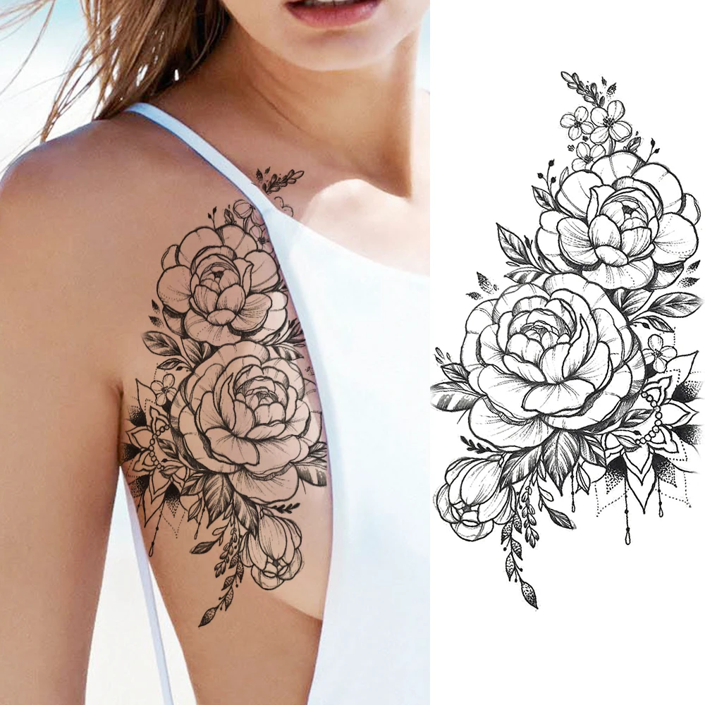 Черные Водонепроницаемые наклейки в виде цветка лотоса временная татуировка