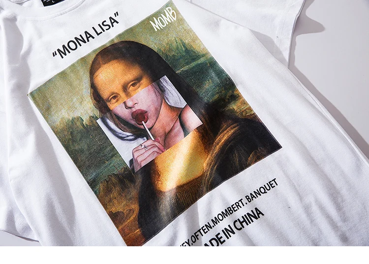 | Tide/Брендовые мужские Забавные футболки с коротким рукавом с принтом Mona Lisa, уличная одежда 2019 года, летние футболки в стиле Харадзюку в стиле хип-хоп, модные мужские футболки Таблица размеров