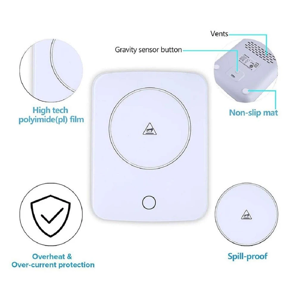 Благодаря технологии микрогравитации, этот нагреватель чашки может выключить/включить авто, просто подключите адаптер в розетку, так удобно использовать.