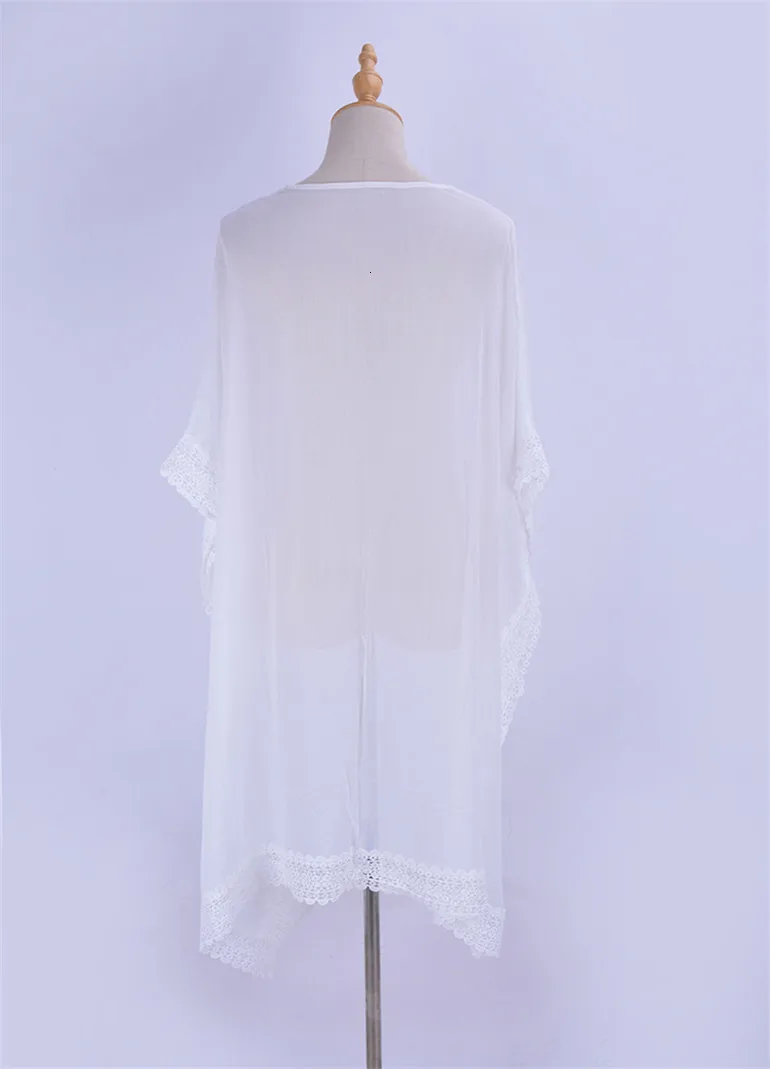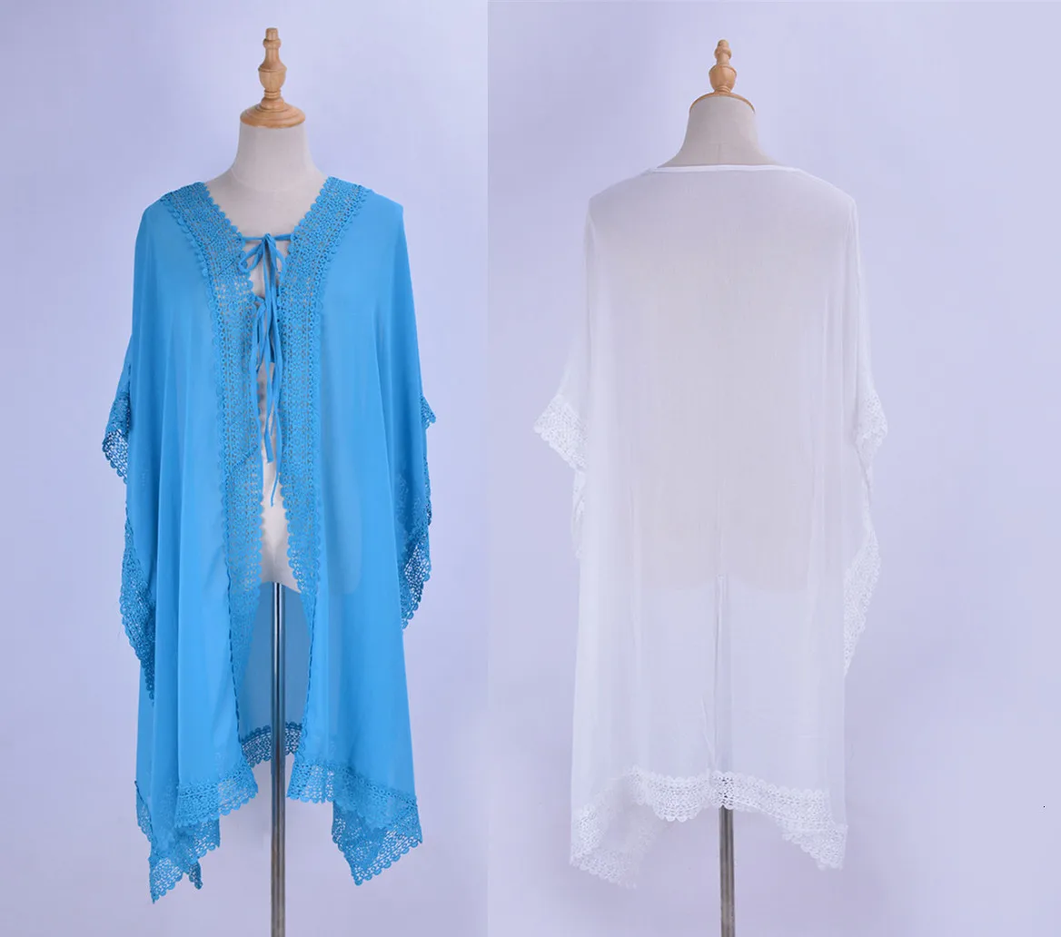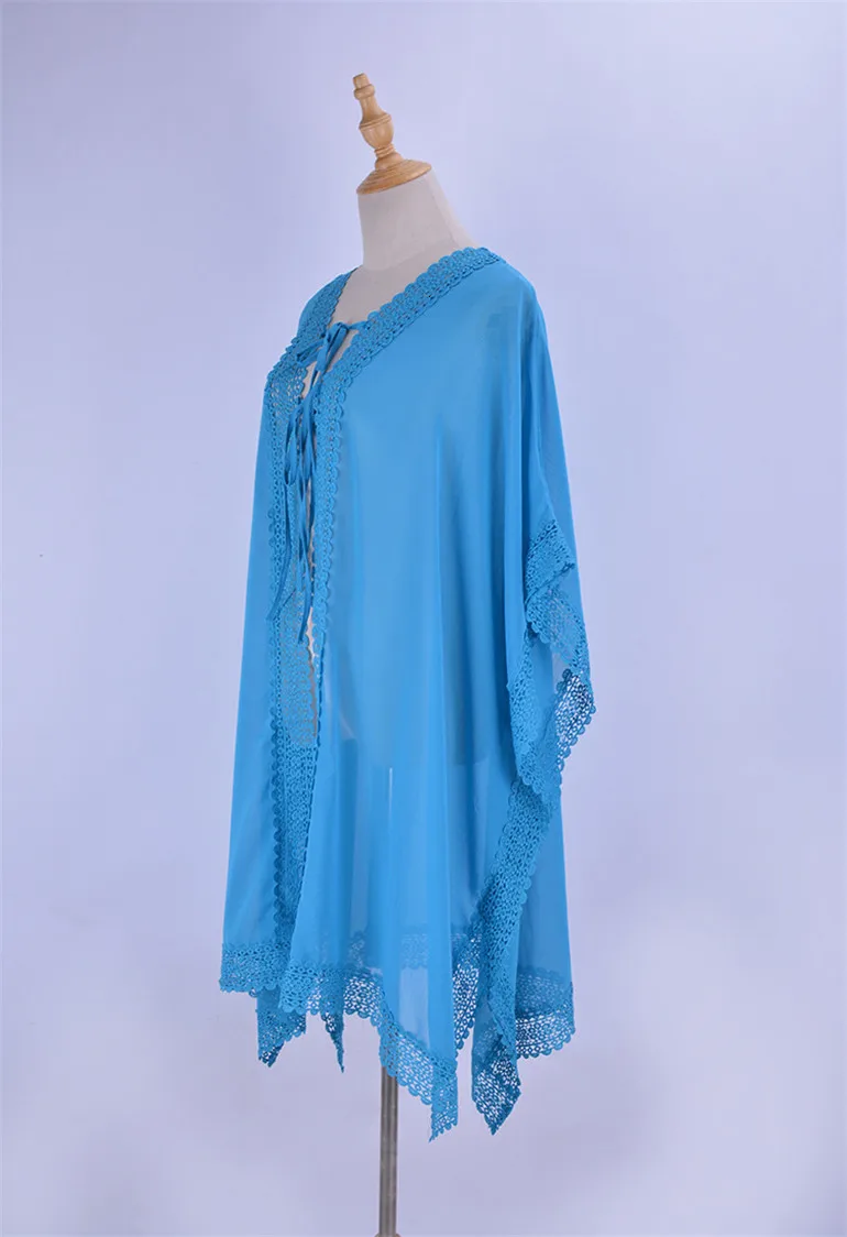 Кружевное прозрачное шифоновое бикини, накидка для женщин, летнее праздничное пляжное платье большого размера, кардиган, синий, белый, рукав «летучая мышь», купальник