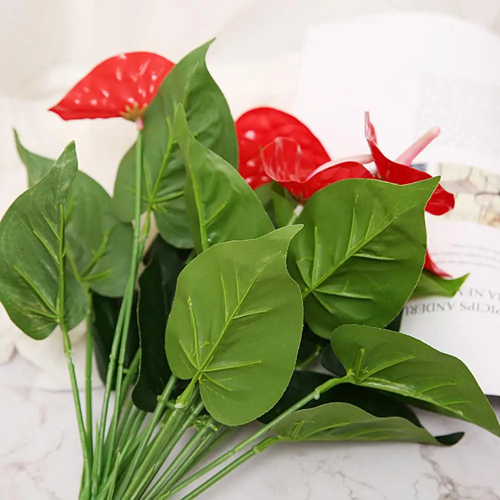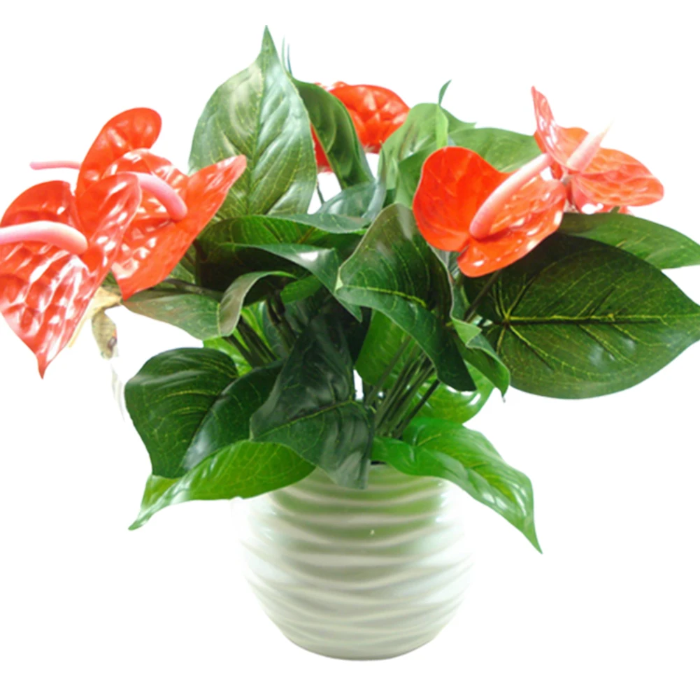 1 шт. 3 головки 9 лист искусственный антуриум цветок растение домашний офис садовый декор