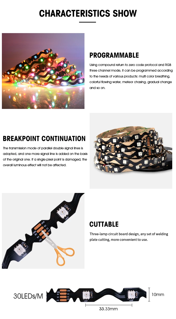 DC5V SMD5050 WS2812b s-образный SK6812 30 светодиодный S/m точки останова непрерывно Адресуемая цифровая светодиодный полоса для неравномерного места