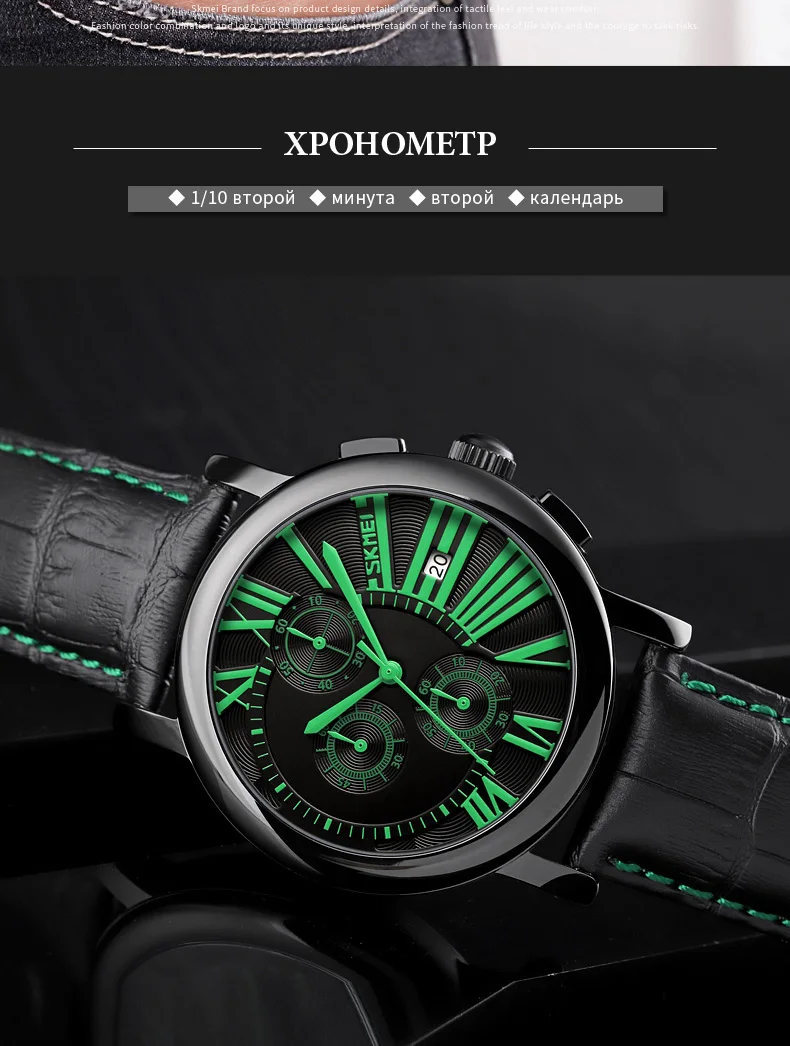 SKMEI модные часы для мужчин красочные спортивные кварцевые часы 3 бар водонепроницаемые секундомер Дата Кожаный ремешок relogio masculino 9196 мужские