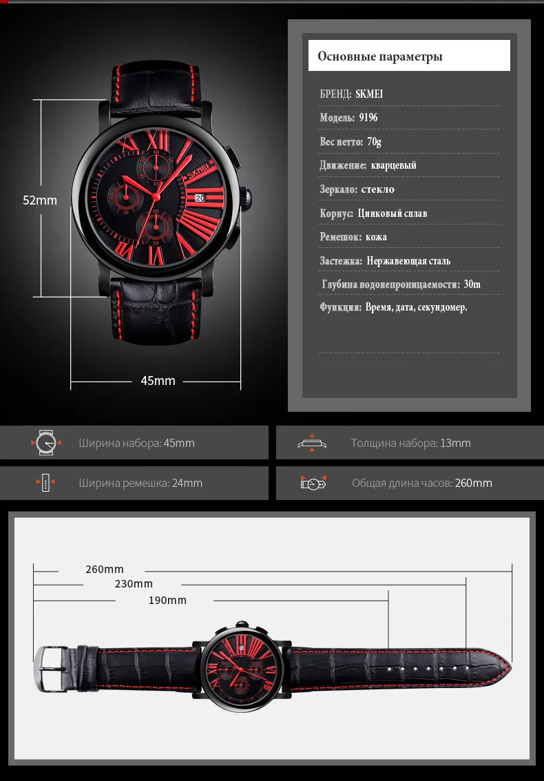 1. Модель: SKMEI 9196 кварцевые мужские наручные часы
