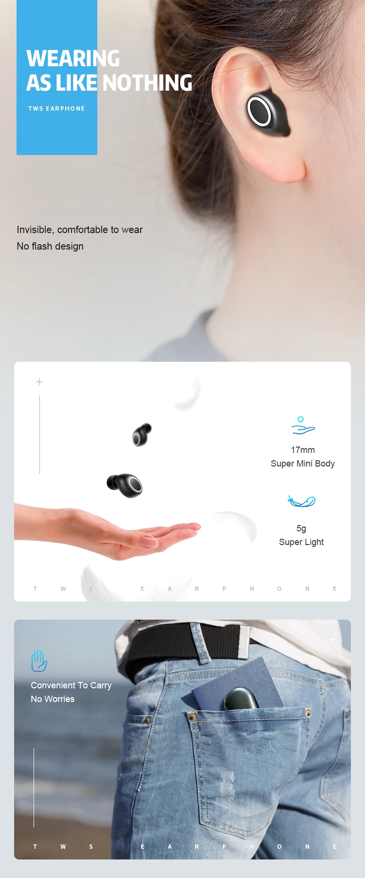 3D стерео звук Беспроводной наушники Портативный наушники-вкладыши TWS Bluetooth V5.0 сенсорный вкладыши с зарядом Чехол спортивные бас гарнитура Авто Мощность ВКЛ/ВЫКЛ