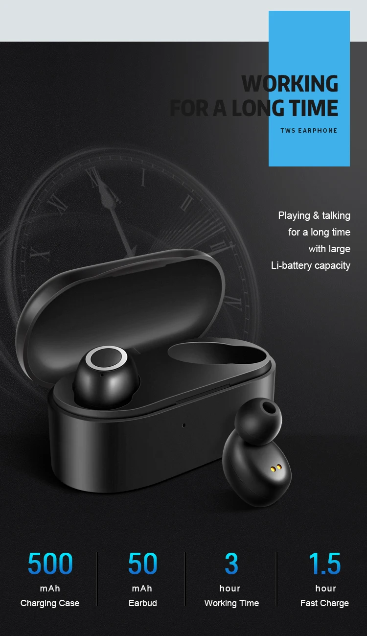 Поддержка одного наушника подключение к телефону. Версия Bluetooth: V5.0 Рабочий диапазон: в 10 метров Амплитудно-Частотная характеристика: 100 Гц-20 кГц Батарея Напряжение/Ёмкость: 500 мАч Зарядка чехол; 50 мА/ч, вкладыши Время работы: около 2-3 часов Время работы: около 2-3 ч Время зарядки: около 1,5 ч Чувствительность: 95dB Сопротивление: 96Ω Активное шумоподавление: Да