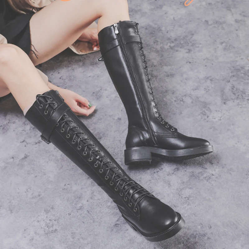 Модные замшевые кожаные женские сапоги больших размеров 35 43 зимние до колена для