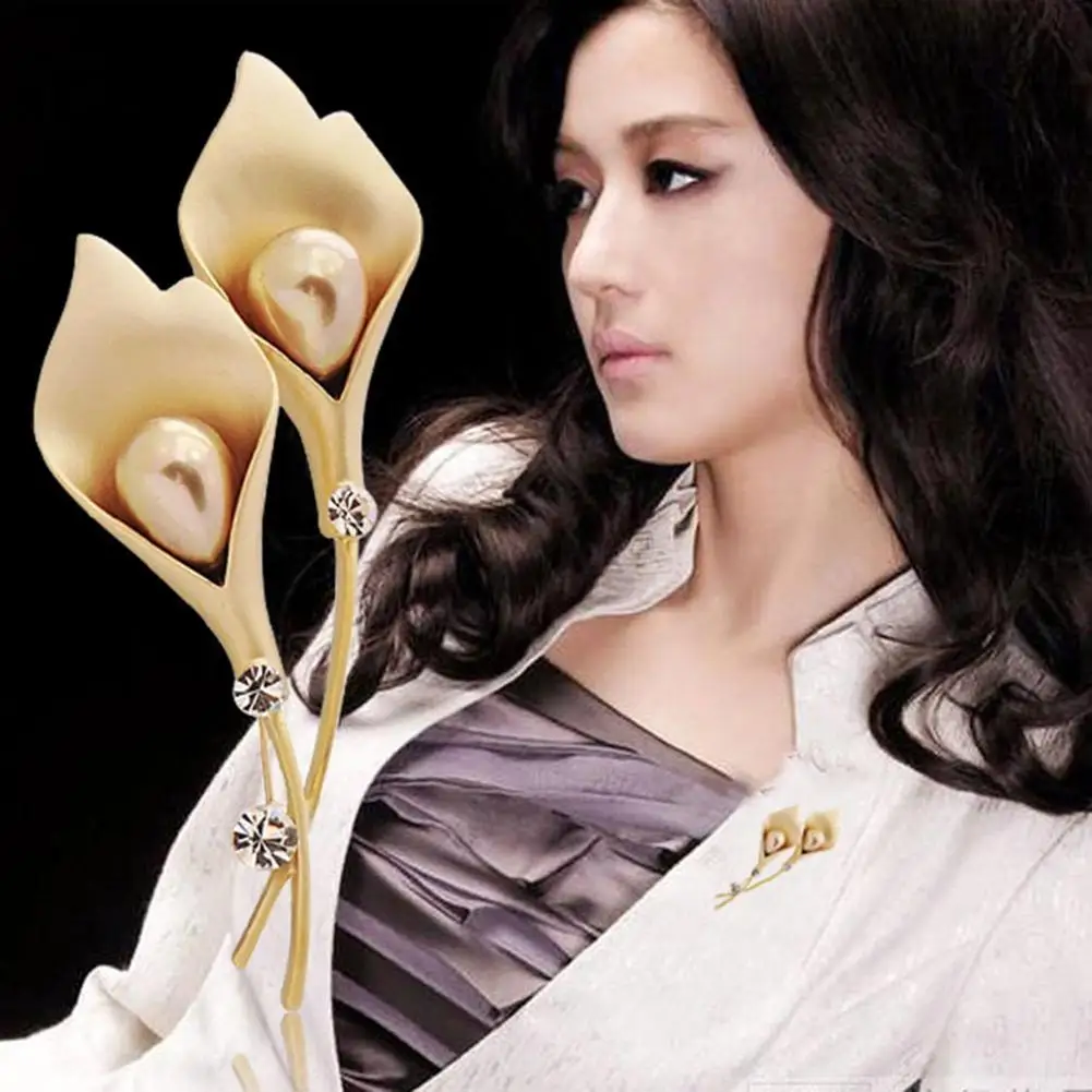 Модная женская брошь на булавке Тюльпан Форма искусственный жемчуг инкрустированная Брошь булавка платье костюм Воротник значок Женские аксессуары