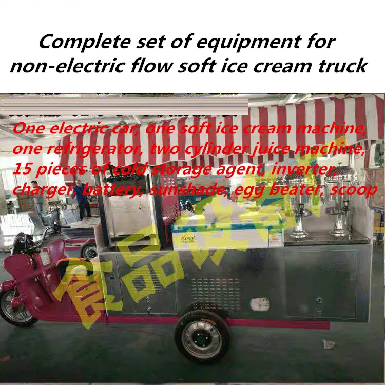 Специальный грузовик для мороженого (включая гравировальную пластину), Лепесток дождя (включая полку из нержавеющей стали), специальная мягкая машина для мороженого, Одна специальная соковыжималка для двух цилиндров, одна специальная холодильная морозильная камера, четыре соответствующие специальные аккумуляторы и один комплект зарядного устройства
