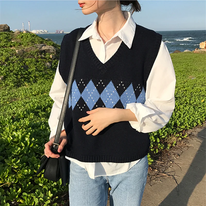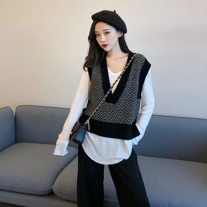 Женский свитер в клетку с v образным вырезом повседневный жилет консервативном