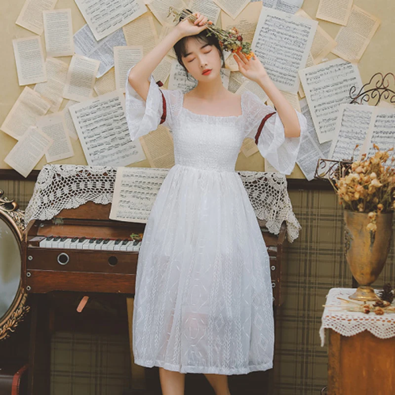 Японское милое платье в стиле девушки Мори женские Лоскутные кружевные