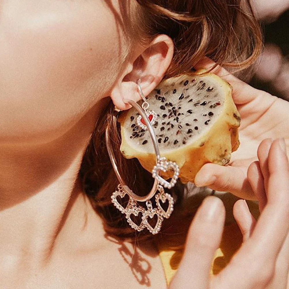 Панк женские серьги металлический большой обруч кисточкой большой круг любовь сердце массивные серьги гвоздики ювелирные изделия женские аксессуары