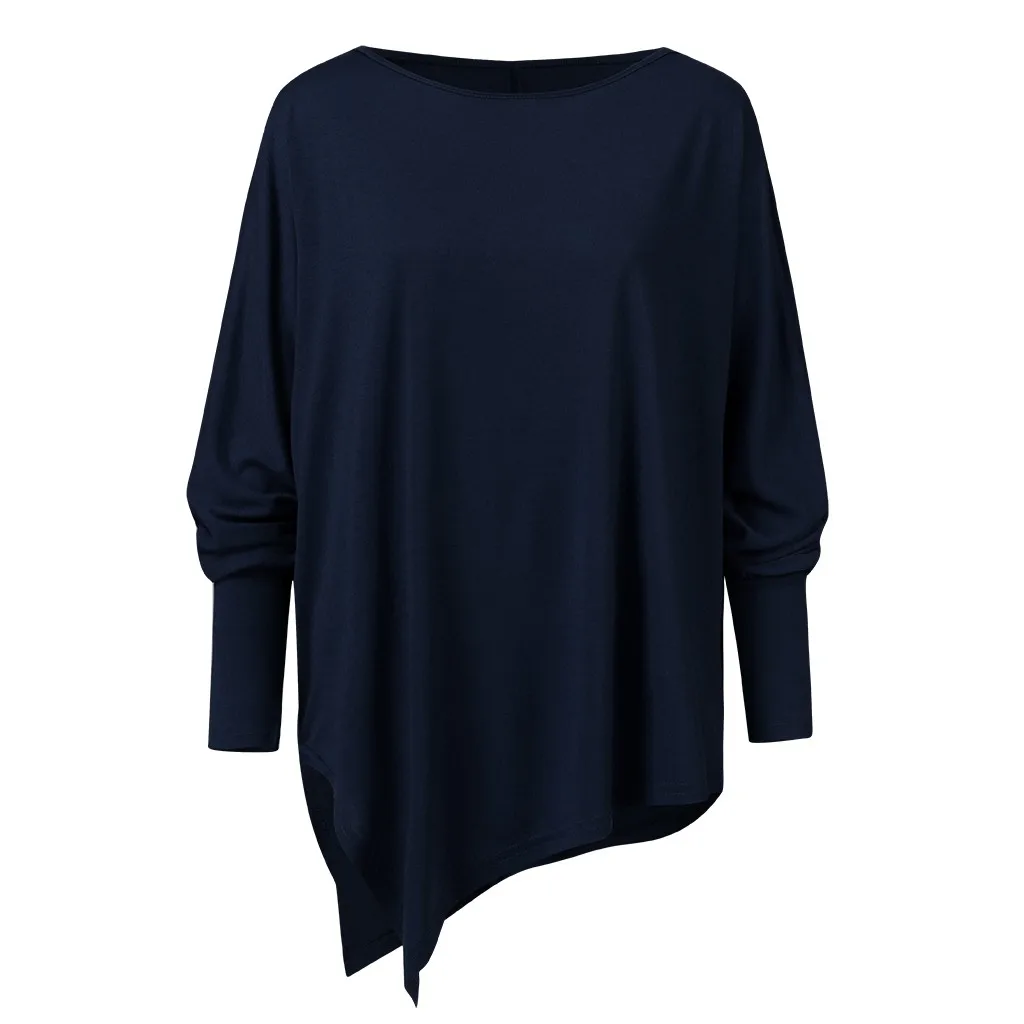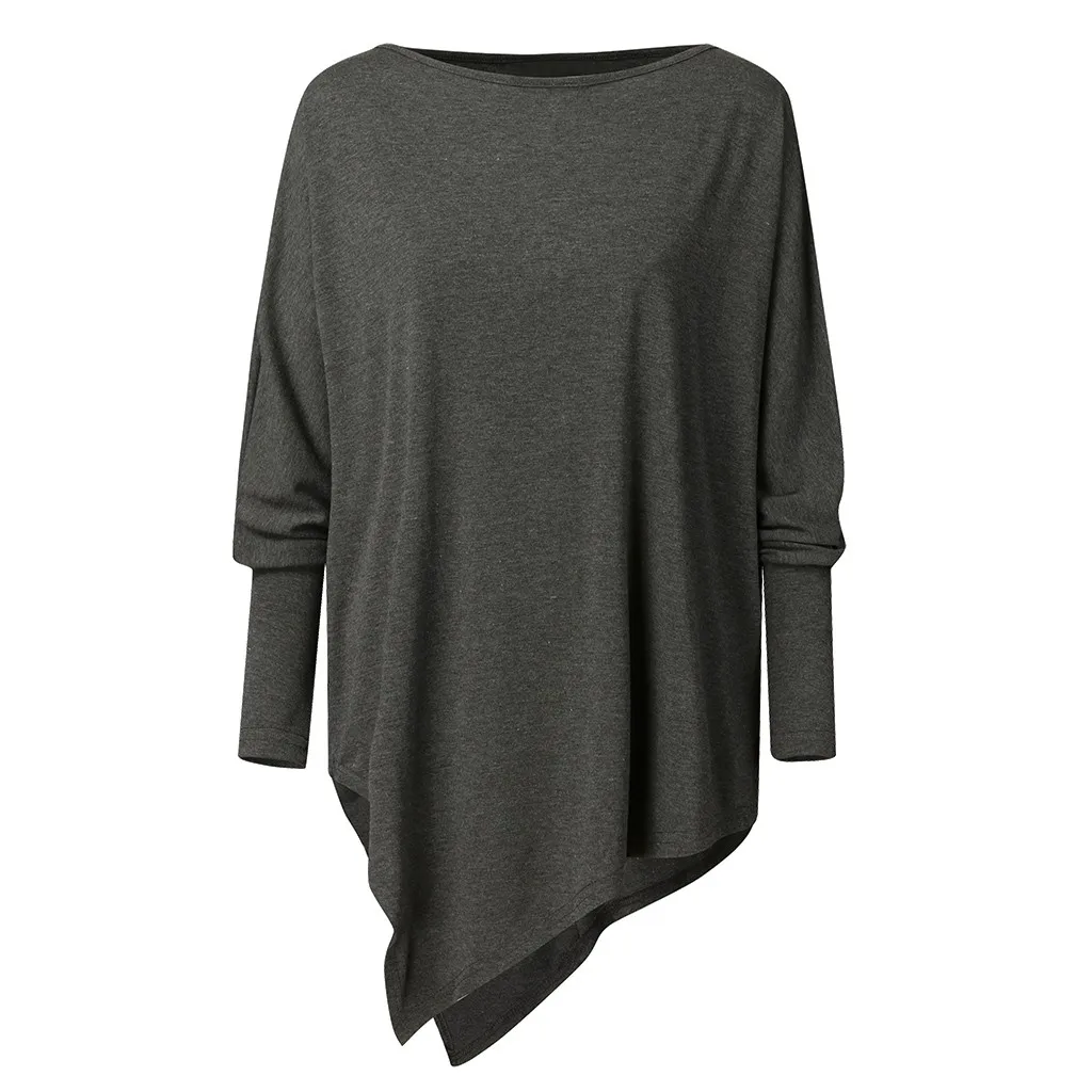 Женские однотонные с длинным рукавом Нерегулярные Длинный свитшот с принтом пуловер, топы, блузка