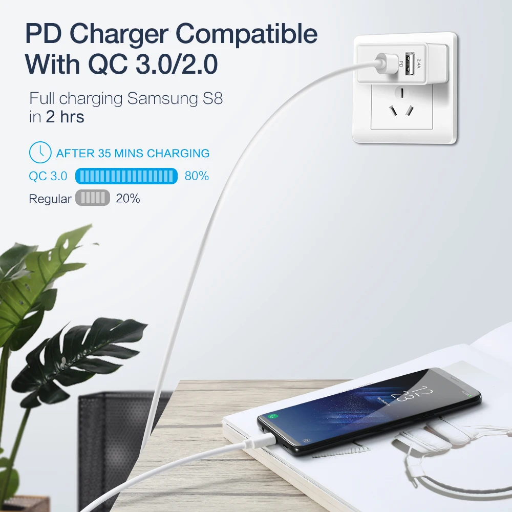 USB-C: 5 В/3A 9 В/2A 12 В/1.5A PD18W PD совместим с QC3.0/2,0