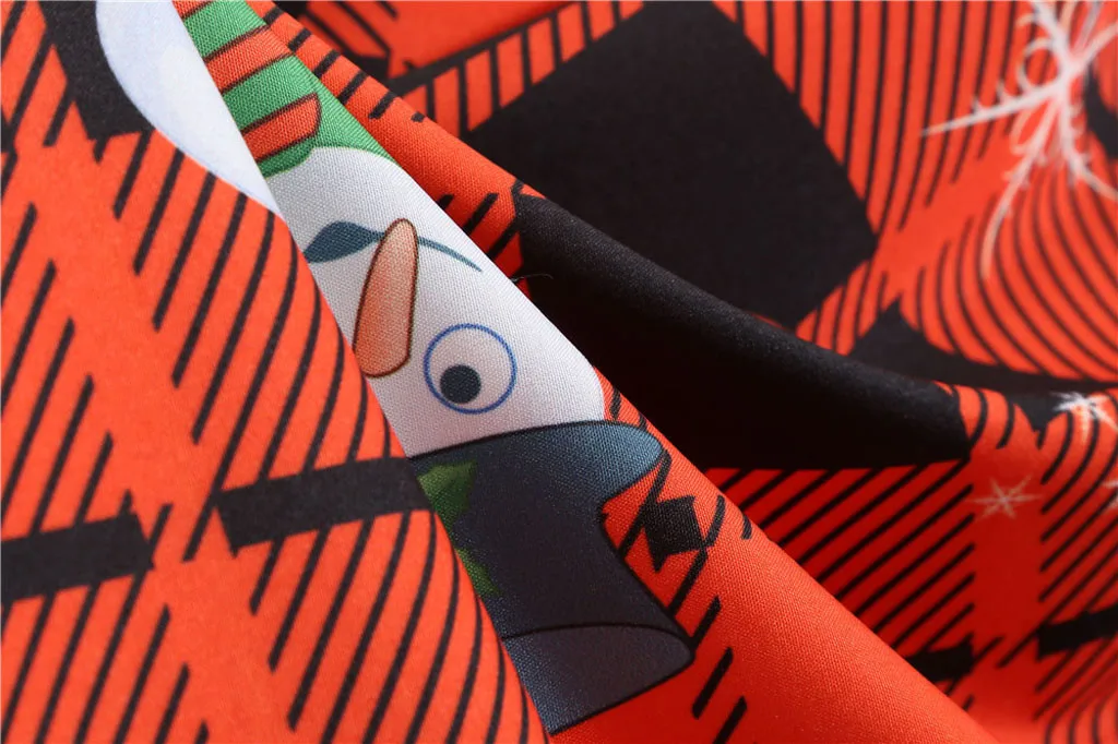 Винтажная строчка с рождественским принтом плюс Европейский королевский стиль придает вам ретро и элегантный вид; облегающий и расклешенный силуэт прикрепляет вашу фигуру