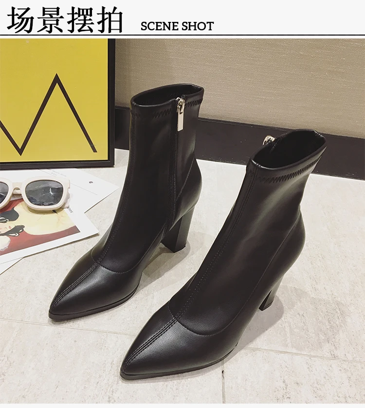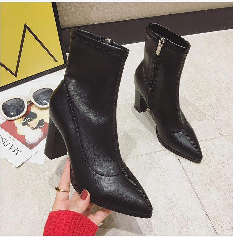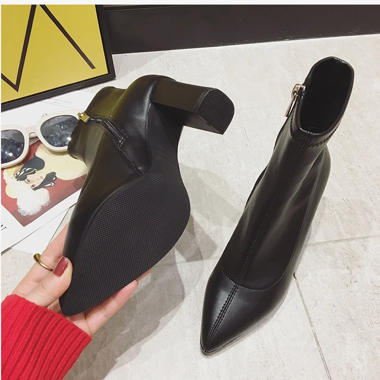 Botas mujer invierno/2019 женские ботинки теплые зимние ботильоны «Челси» на меху женские ботинки на молнии сбоку ботинки на высоком каблуке с боковой молнией