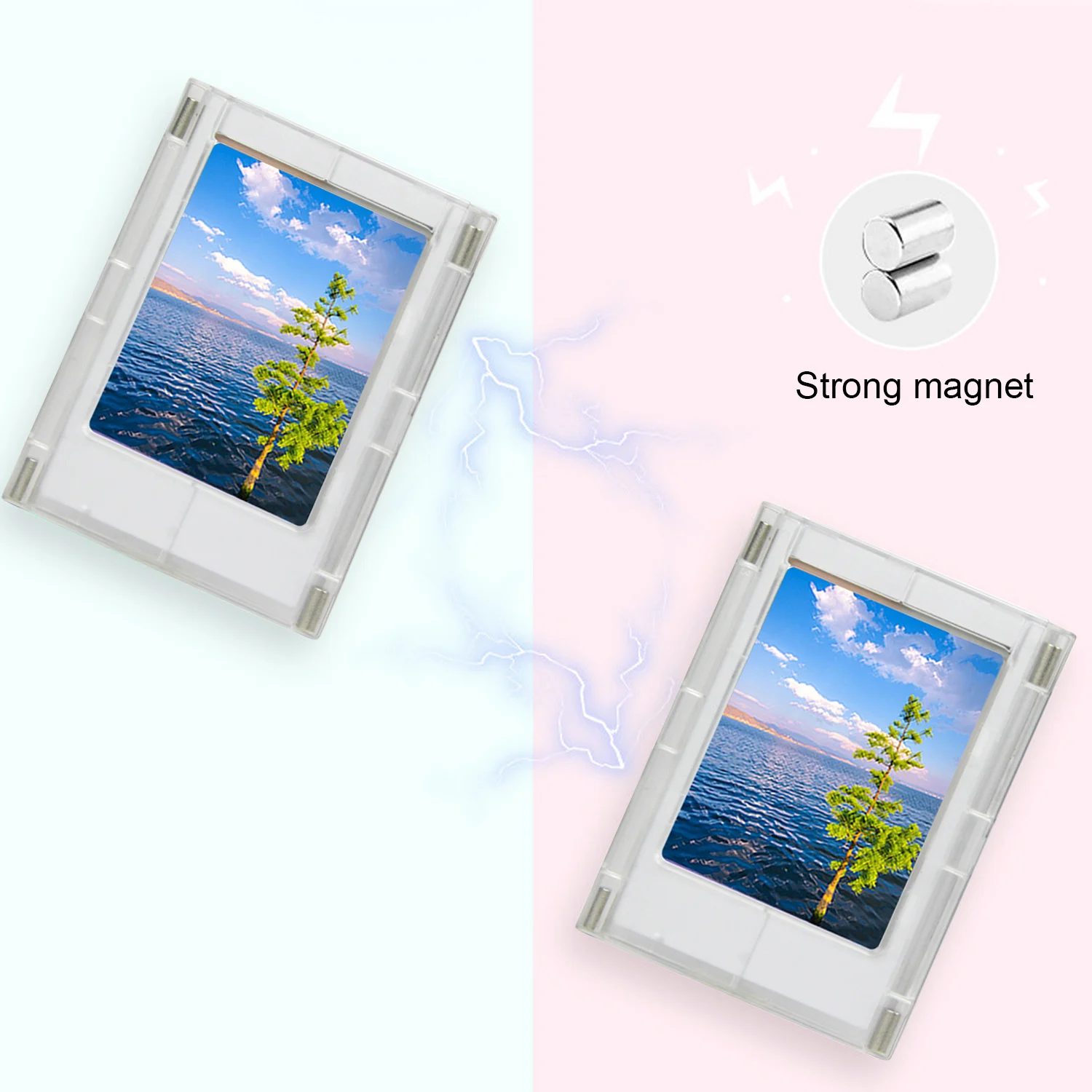 Разработан с мощным магнитом, надежно удерживает фоторамку на любую металлическую Поверхность: холодильник, металлическую дверь, доску, офисный шкаф и так далее.