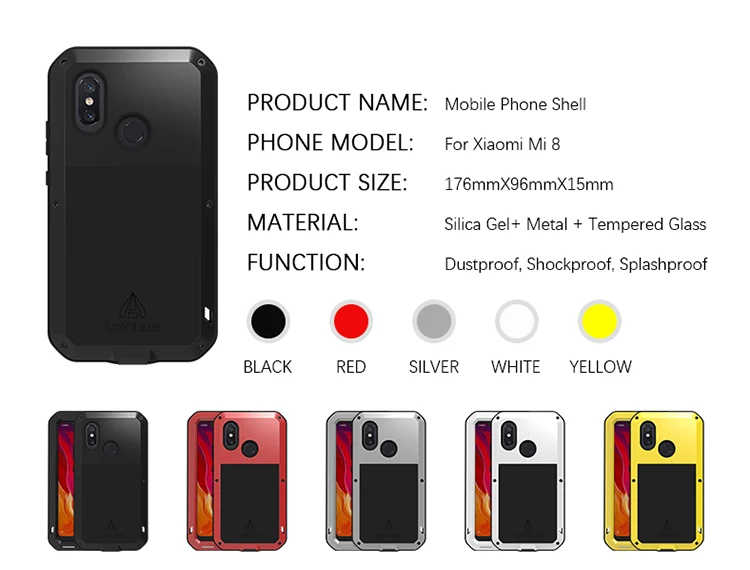 Алюминиевый металлический чехол LOVE MEI для Xiaomi Mi 8, мощный противоударный водонепроницаемый чехол для Xiaomi 8 Mi8 M8, чехол, чехол