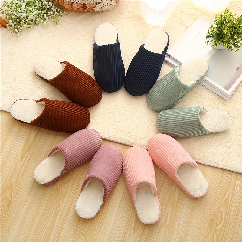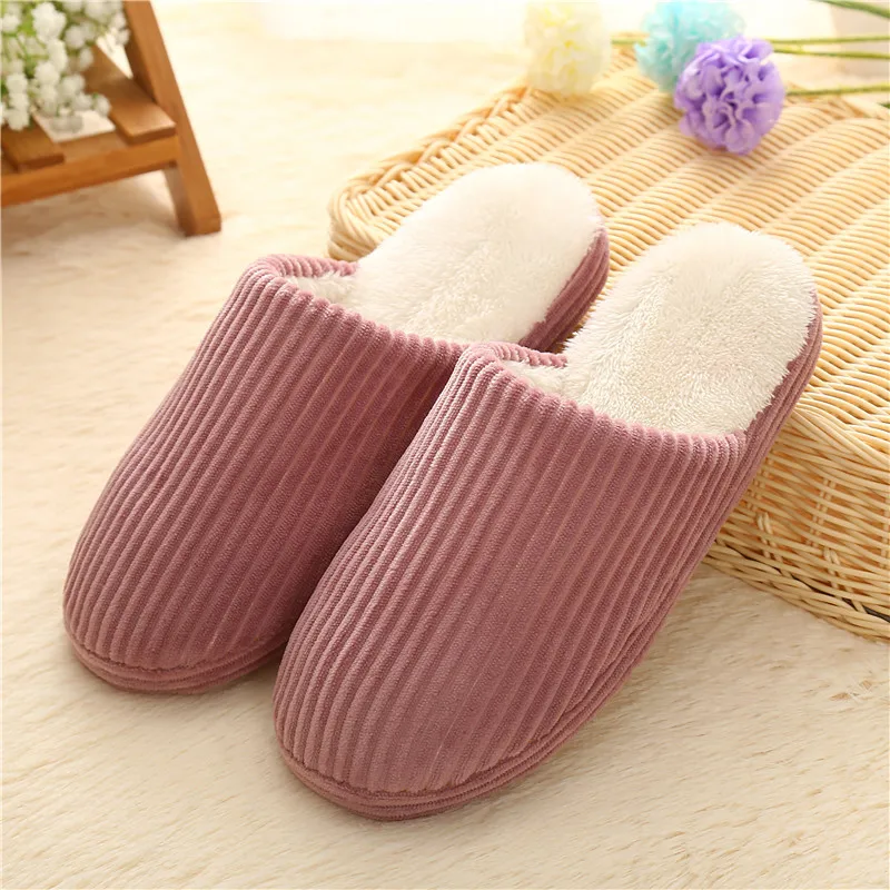 Зимние домашние тапочки; Полосатые мягкие тапочки на толстой подошве для пары; Нескользящие тапочки