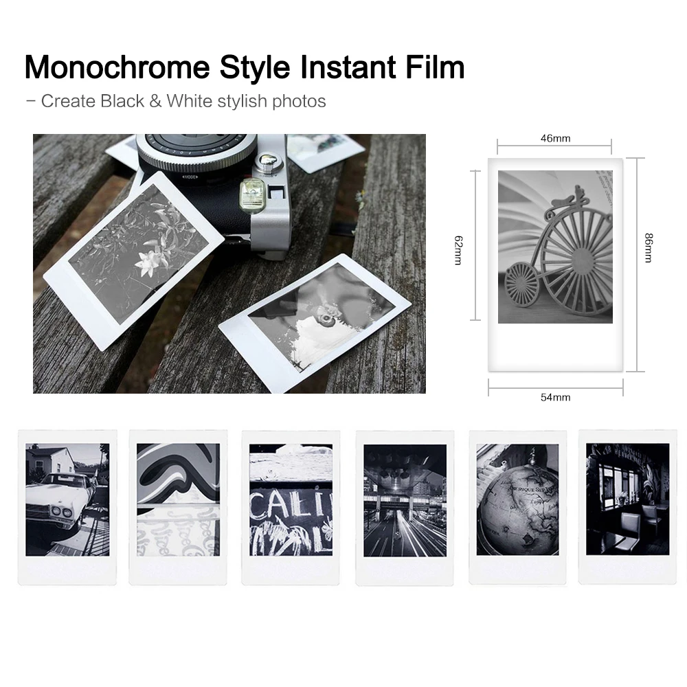 Эта пленка 54*86 мм предназначена для принтера смартфона Fujifilm Instax Mini7s/8/25/50s/70/90 SP-1/SP-2. С пустым краем фото для информации DIY. Хороший партнер для вашего незабываемого путешествия.