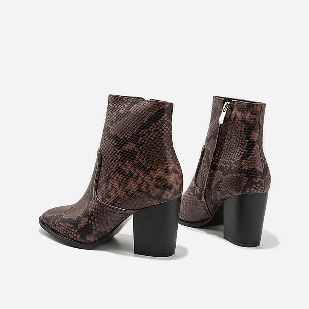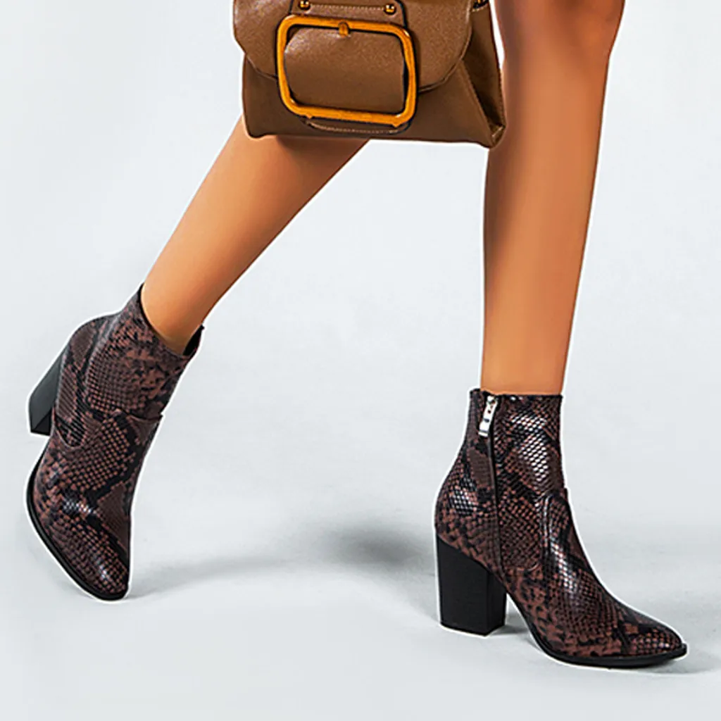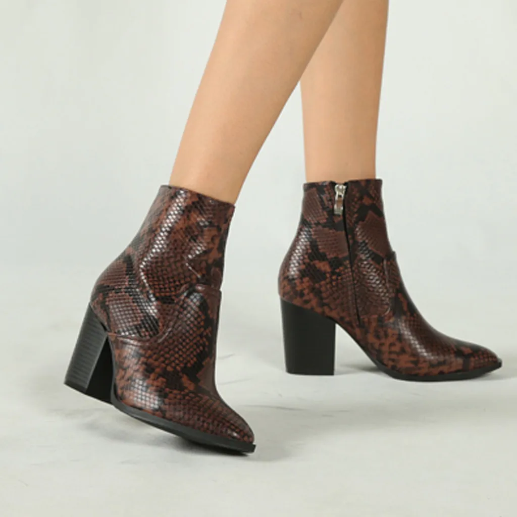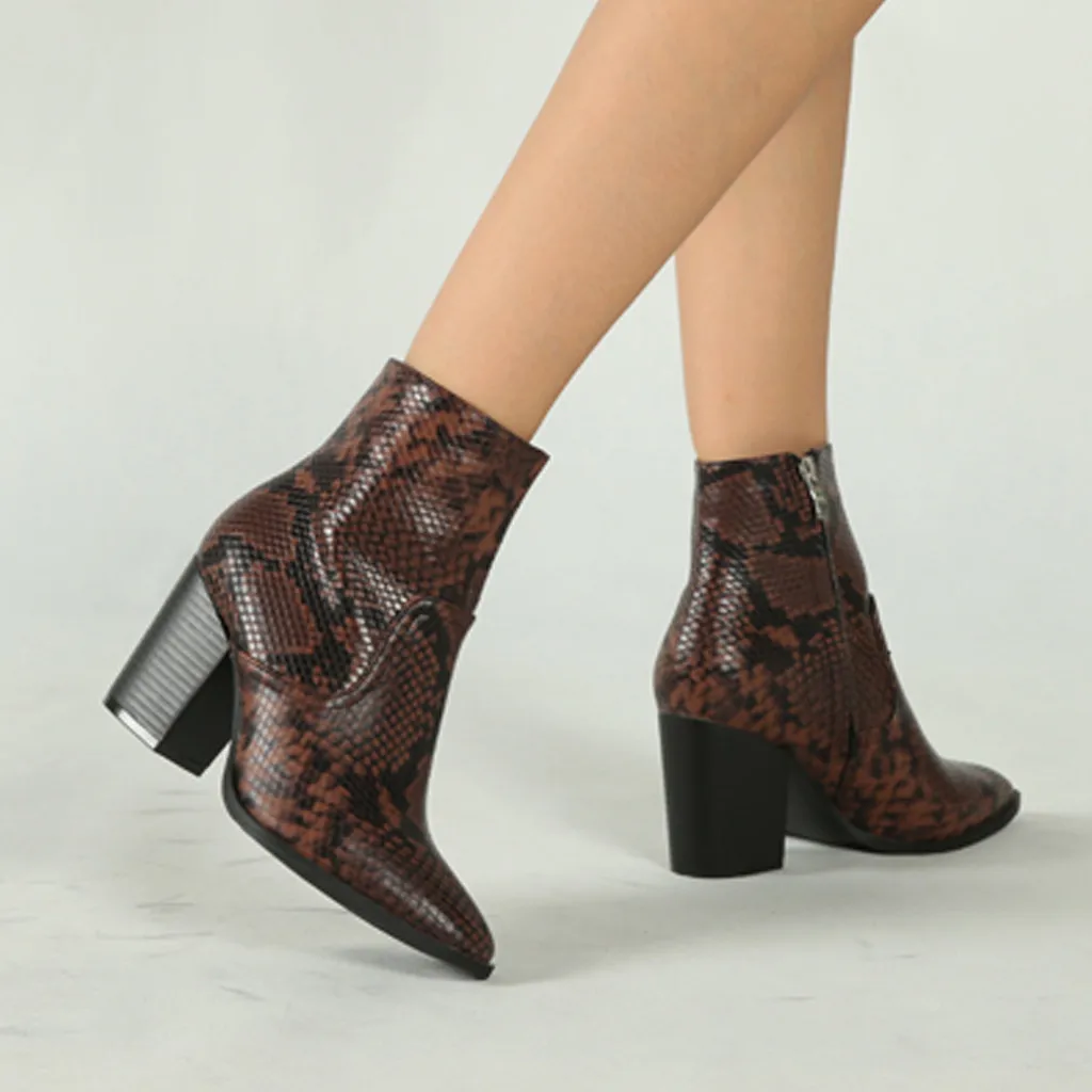 Женская модная обувь на высоком каблуке с острым носком; Обувь со змеиным узором; Повседневные женские ботинки