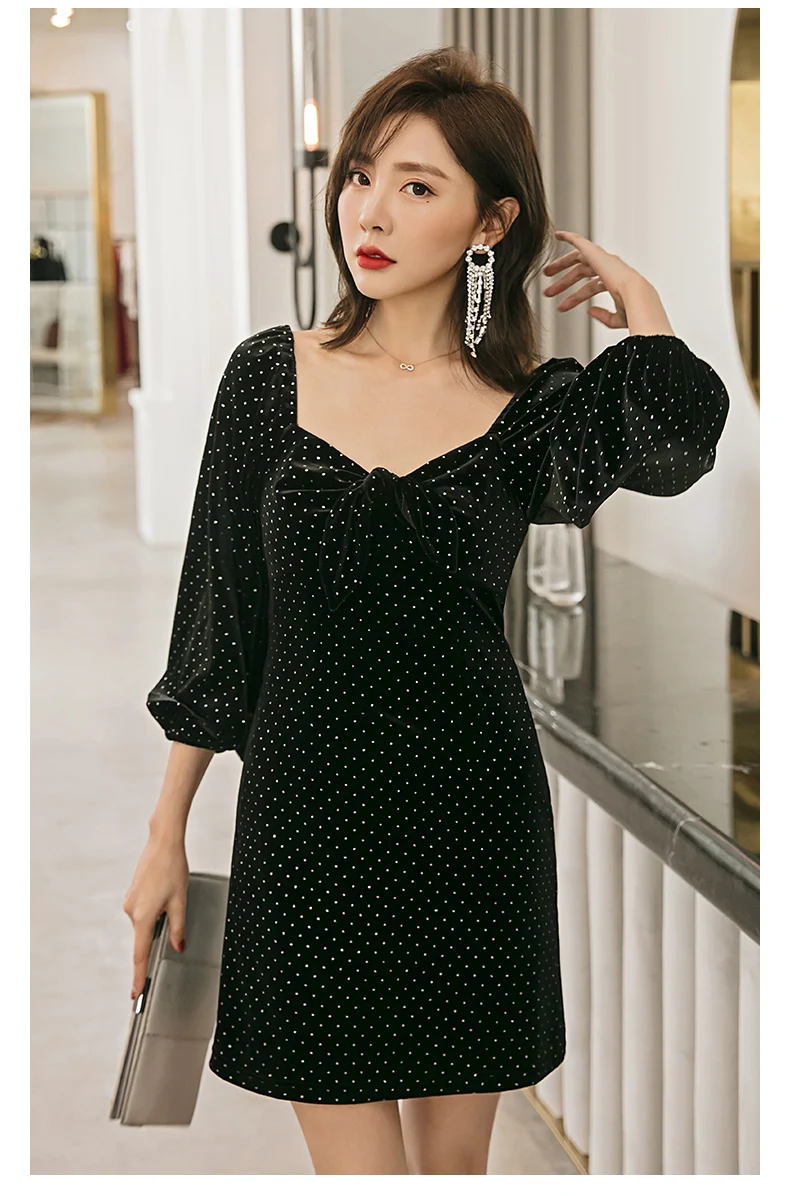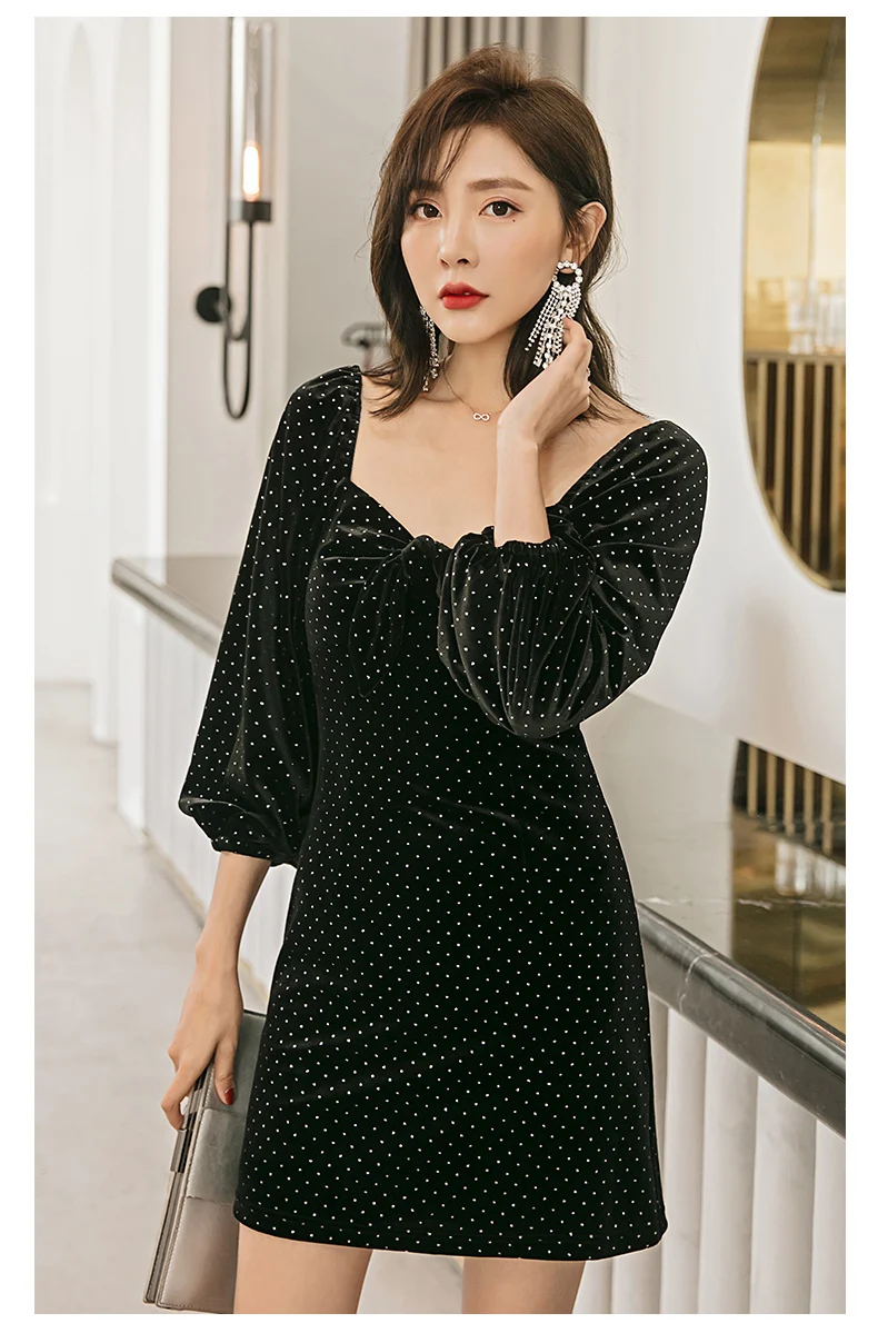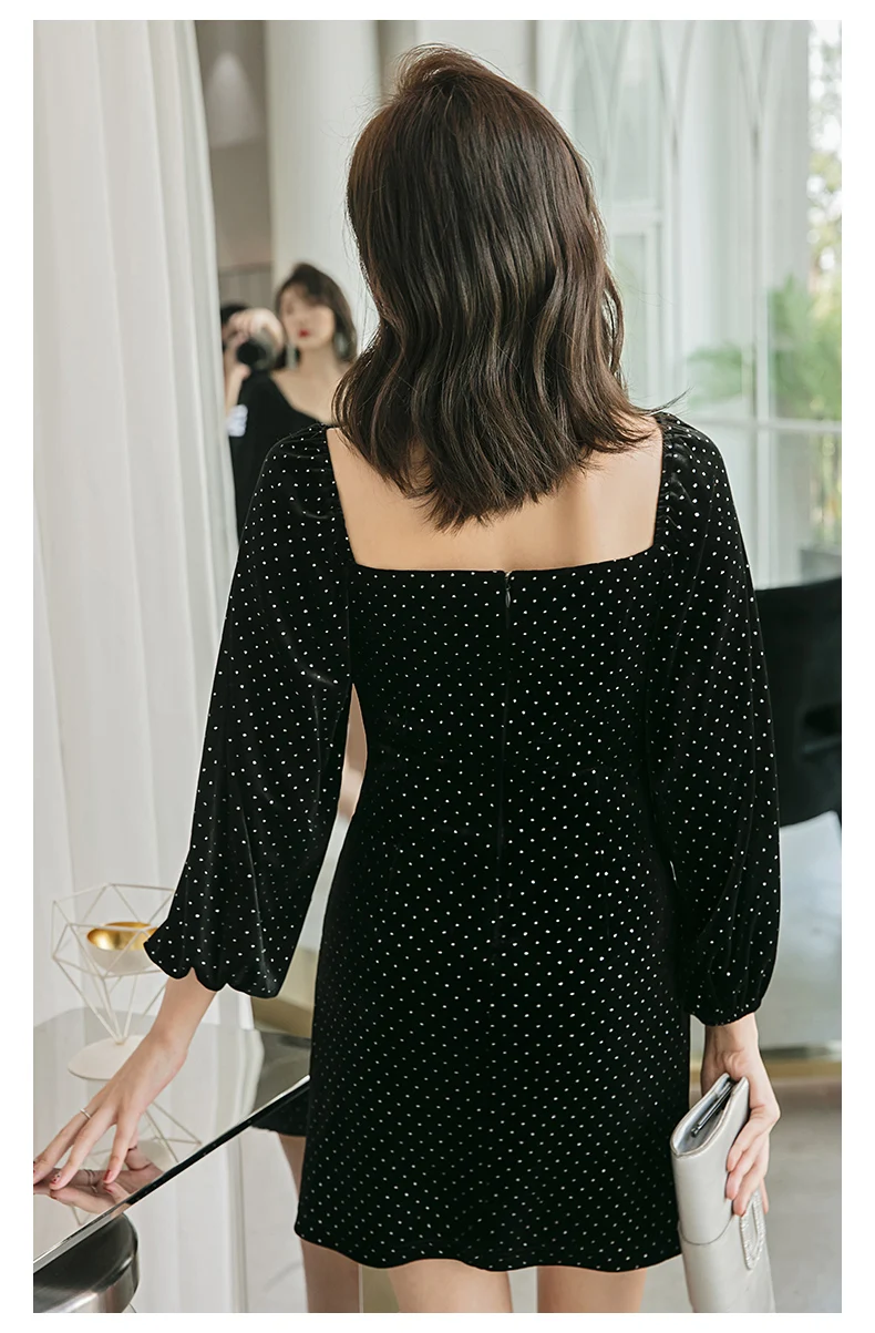 Женское приталенное платье годе темно синее двубортное с отложным воротником и