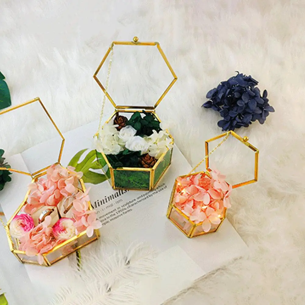 Скандинавские геометрические прозрачные стеклянные цветочные комнаты стеклянные кольца коробка для свадебного кольца инновационное украшение для дома украшение вечноеЦветок Стекло крышка