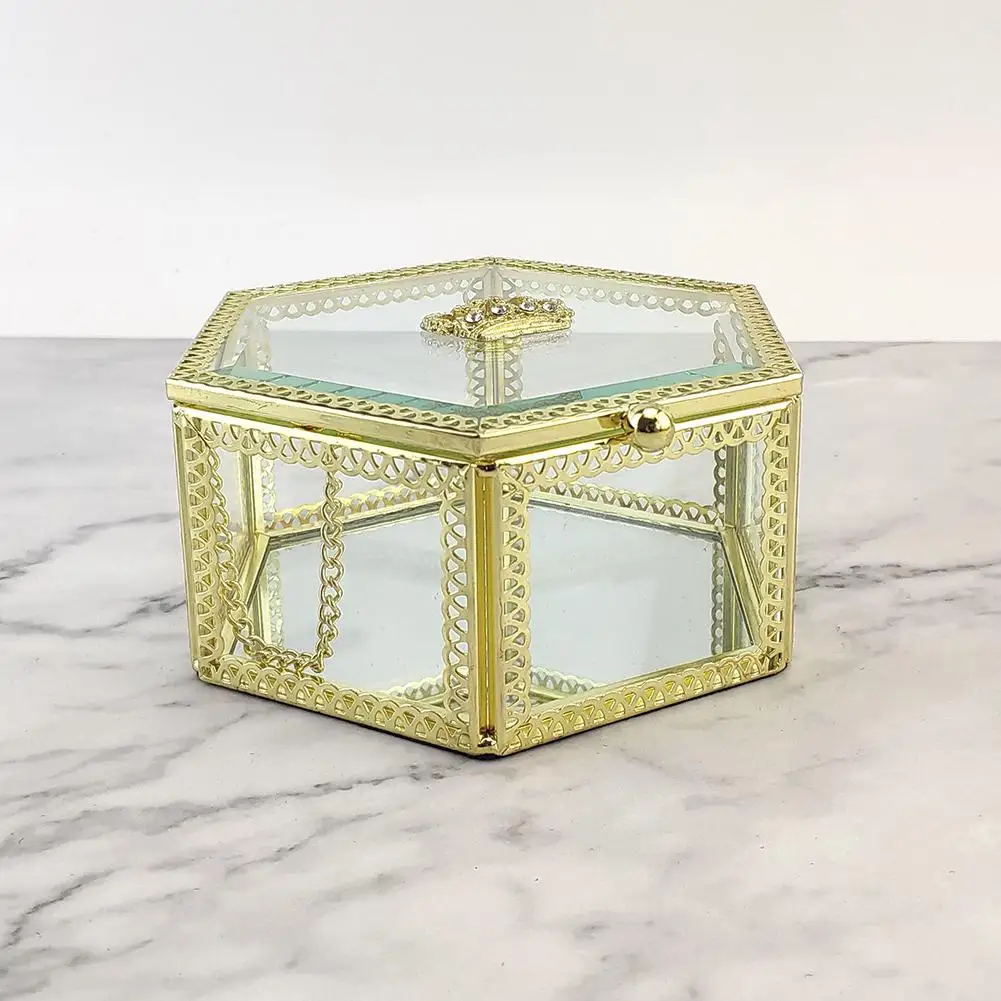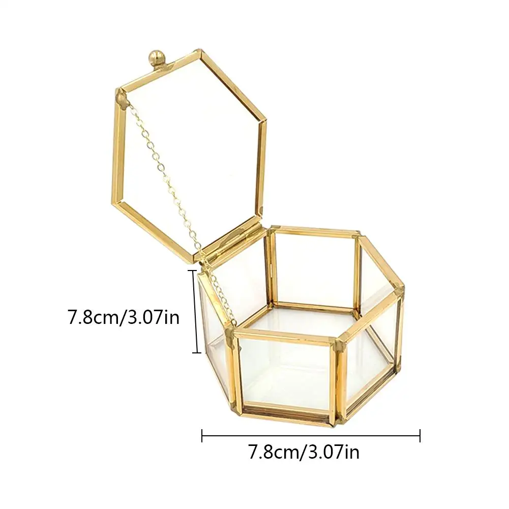 1. Прозрачное стекло и красивый золотой металл: этот держатель дисплея кольца изготовлен из гладкого стекла и высококачественного металла, прочного качества. Металлическая Рамка тщательно отделана красивым золотым цветом, прозрачная стеклянная конструкция позволяет видеть все стороны вашей подарочной коробки.2. Инновационный дизайн: золотая металлическая рамка и прозрачное стекло, Современный художественный дизайн делают его особенным. Зеркало в нижней части может отражать ваши красивые кольца! Каждая кольцевая коробка имеет 1 отверстие, как маленькая дверь с небольшим болтом, это больше похоже на маленький стеклянный домик для Вашего Кольца, так мило!3. Инновационный и милый подарок для девочек или женщин: идеально подходит как чехол для хранения серег, колец, ожерелья, лучшие подарки для девушек и женщин, дам, подарков для девушек, идеи подарка на День Матери и многое другое. Кроме того, используйте в качестве свадебного кольца или подарка на помолвку! Удивите ее этим интересным кольцом! (Ювелирные изделия в комплект не входят).4. Широко применимый: маленький чехол можно использовать в качестве установки для оригинальных декоративных акцентов с использованием растений, камней или предметов ремесла.5. Практичный и уникальный декор: эта подставка закрыта, так что вы можете бросить маленькие пары сережек и других вещей в держатель для хранения, можно использовать этот ящик в ванных комнатах или на кухне, где рядом с раковиной, чтобы ваши драгоценности не промокали. Это такое необычное и выглядит как кусок специальный декор, который может светильник вверх ваше место и осветления кожи все в центре внимания.Параметры:Материал: латунь + стеклоРазмер (прибл.):A: 7,8*7,8*4,3 см/3,07*3,07 * 1.69inB: 14*9*6 см/5,51*3,54 * 2.36inC: 12*11,5*5,5 см/4,72*4,53 * 2.17inОсобенности:1. Дизайн поверхности скандинавского ветра, с бриллиантами в качестве элемента дизайна, символизирует светильник.2. Необычная геометрическая форма многоугольника, индивидуальность является новой и подчеркивает Новый изгиб цветочного дома, безупречное Золотое соотношение и простота раскрывает элегантное качество.Применимо: спальня, гостиная, кабинет, офис и другие сцены.Упаковочный лист: 1 * стеклянная крышка