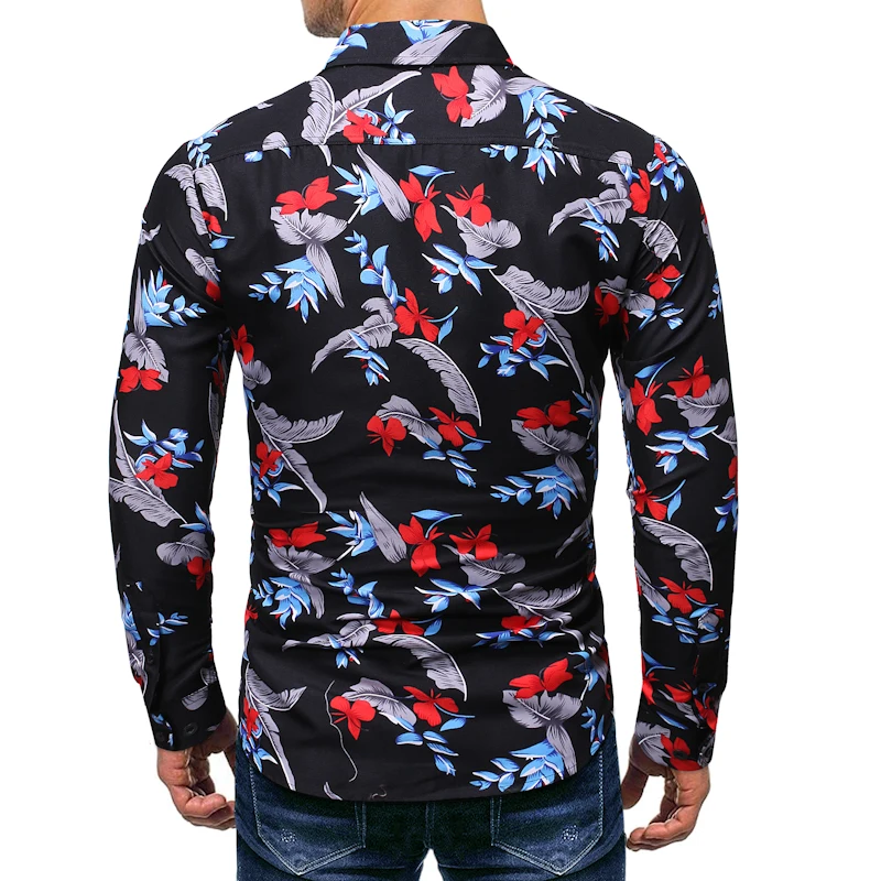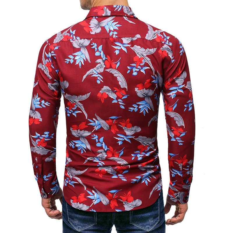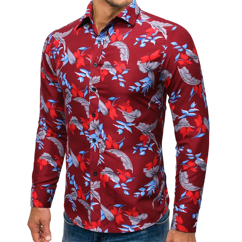 Рубашка мужская с воротником стойкой однотонная длинным рукавом|Повседневные