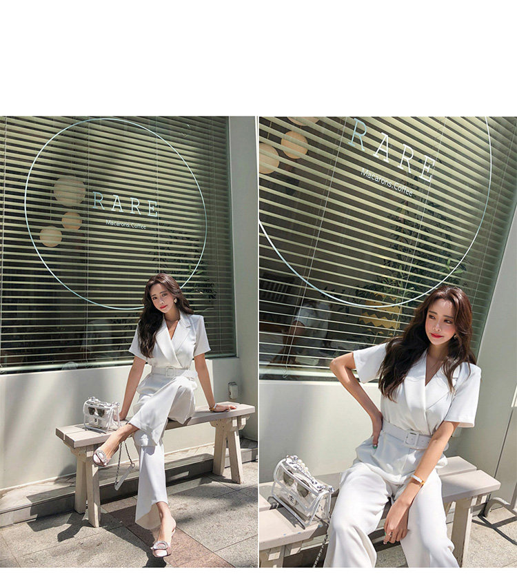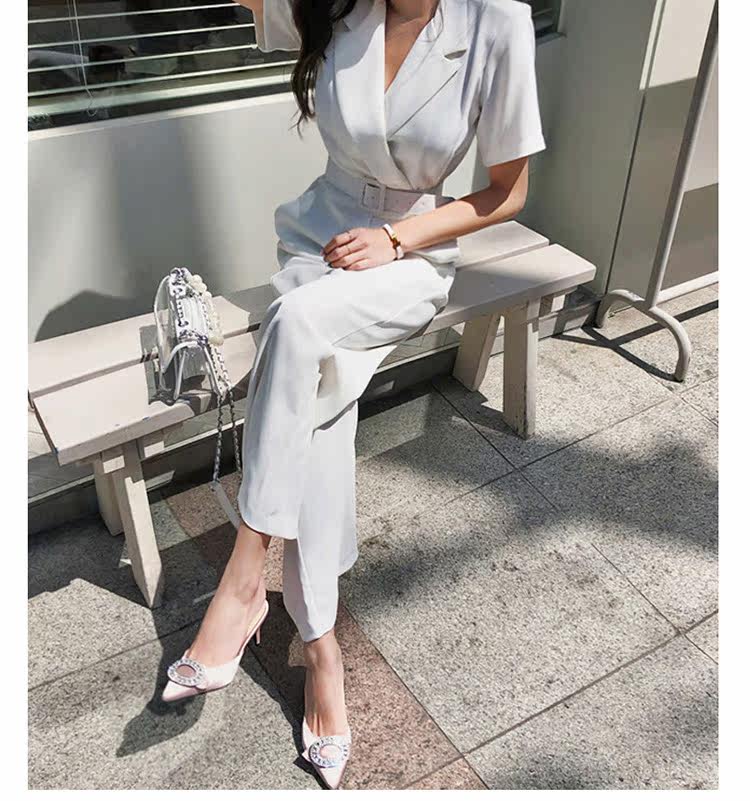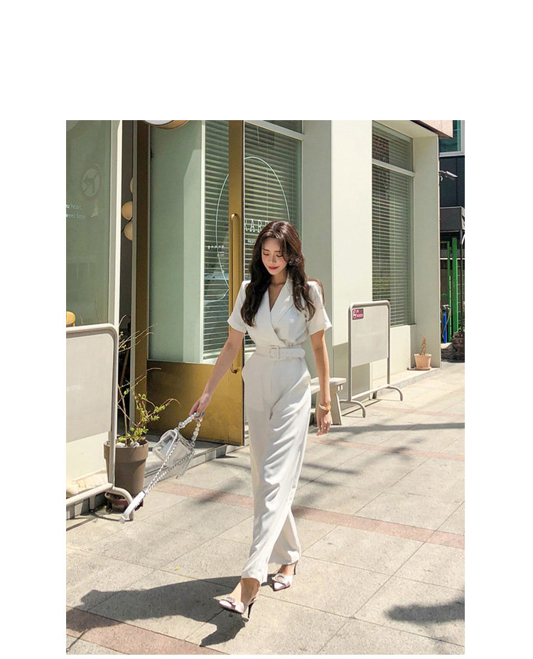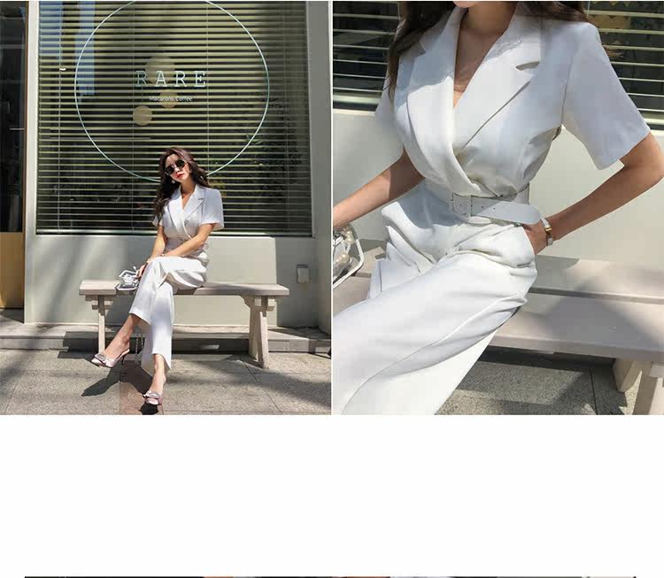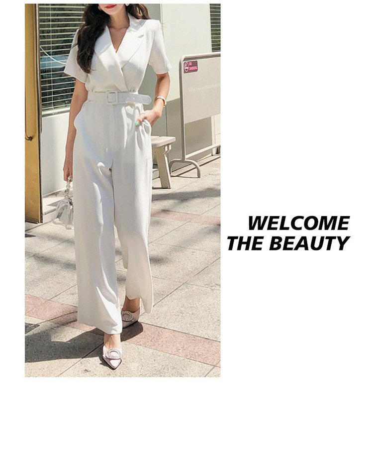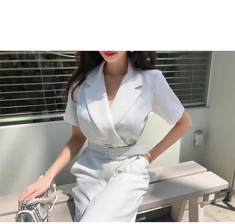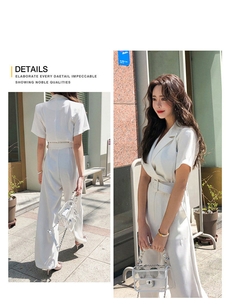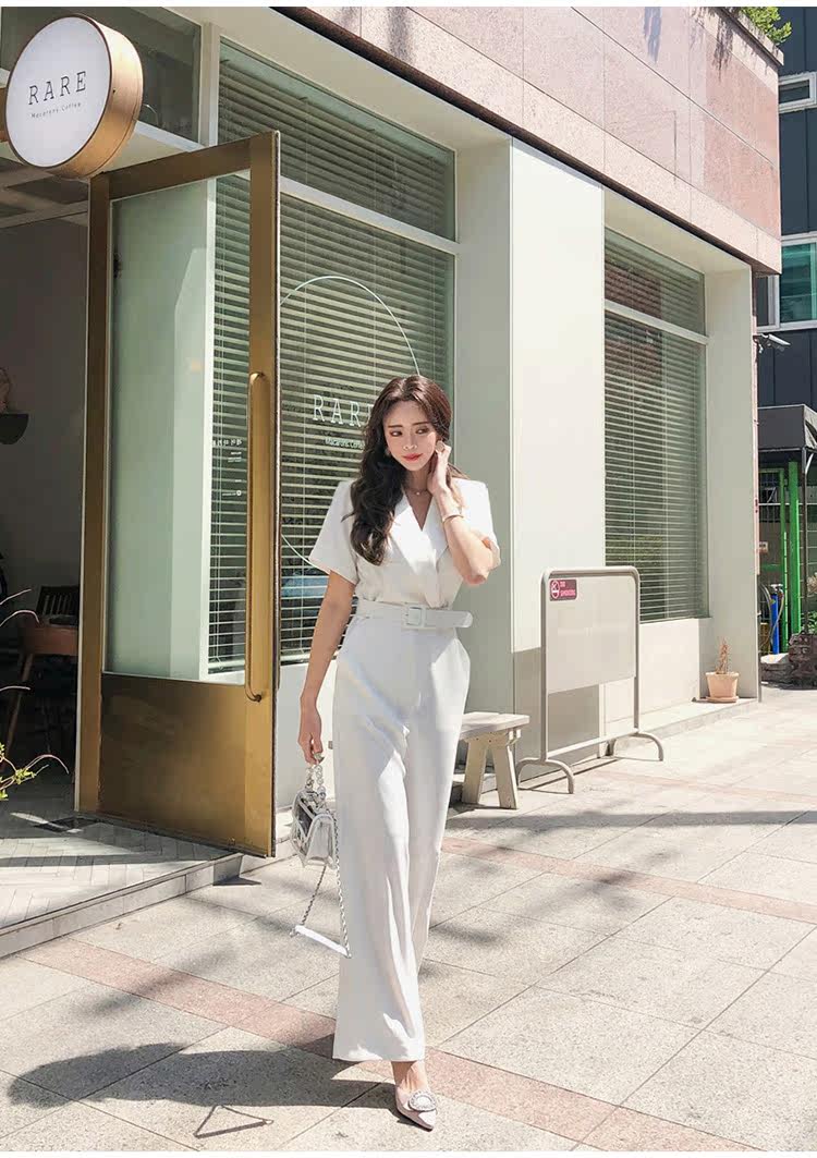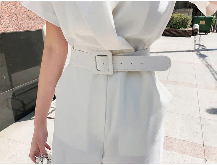 Женский офисный комбинезон с отложным воротником и короткими рукавами и поясом, белый комбинезон с широкими штанинами для работы, AQ186, 2019