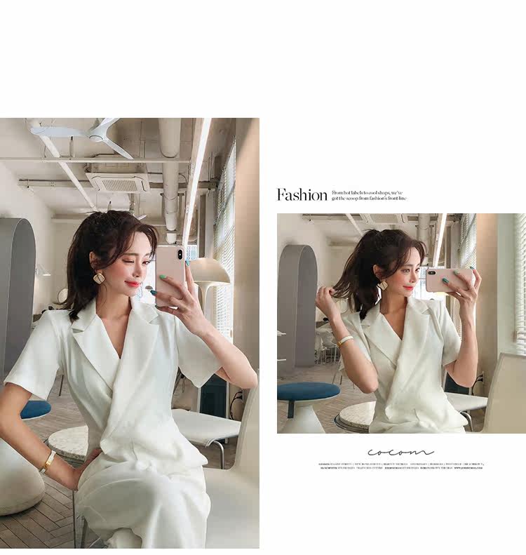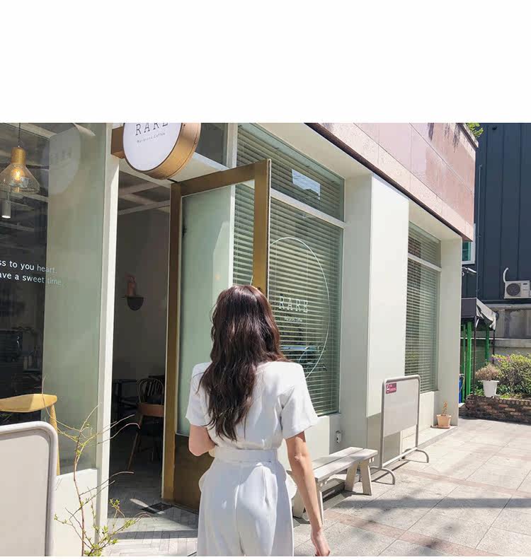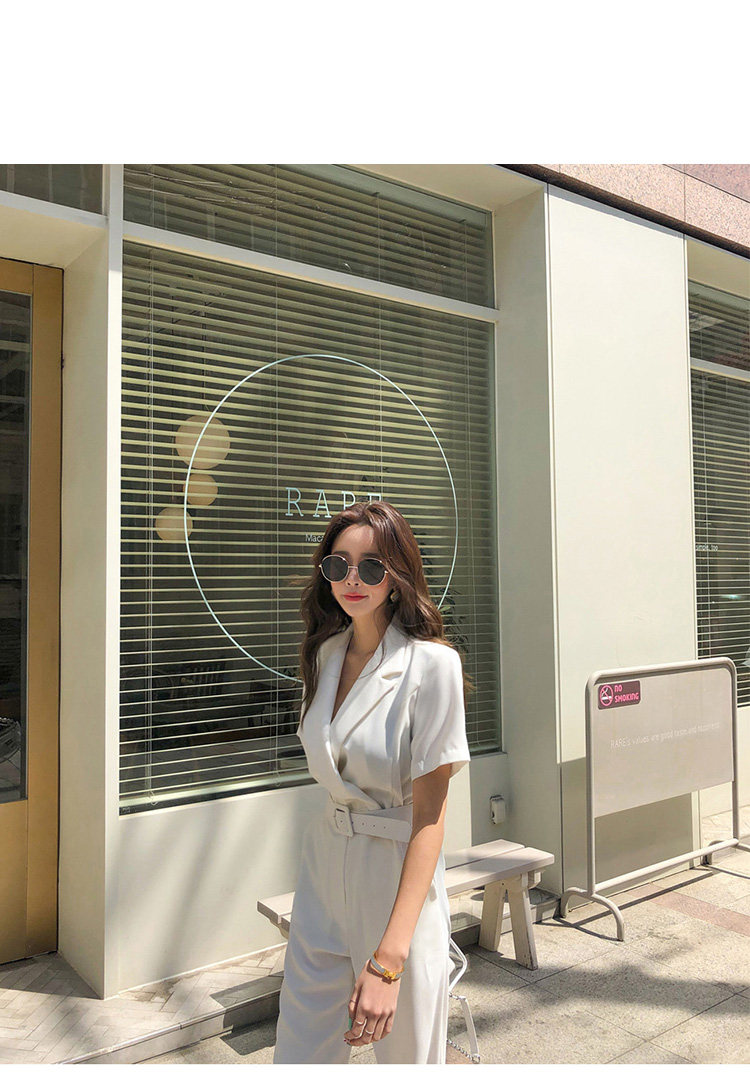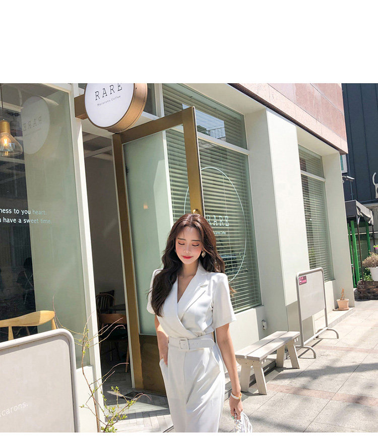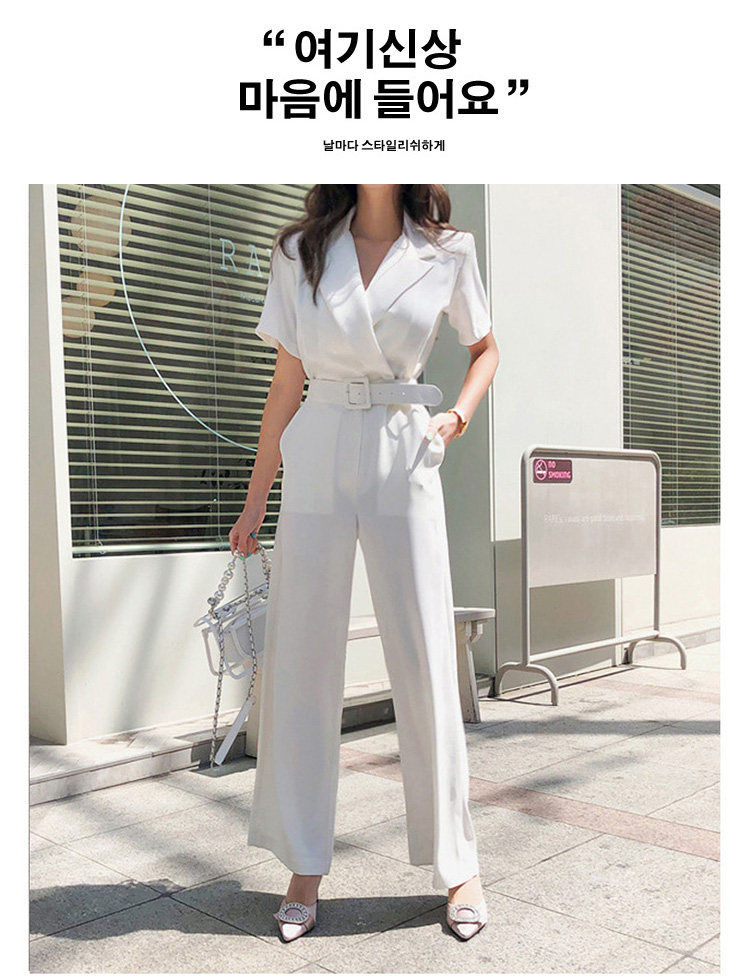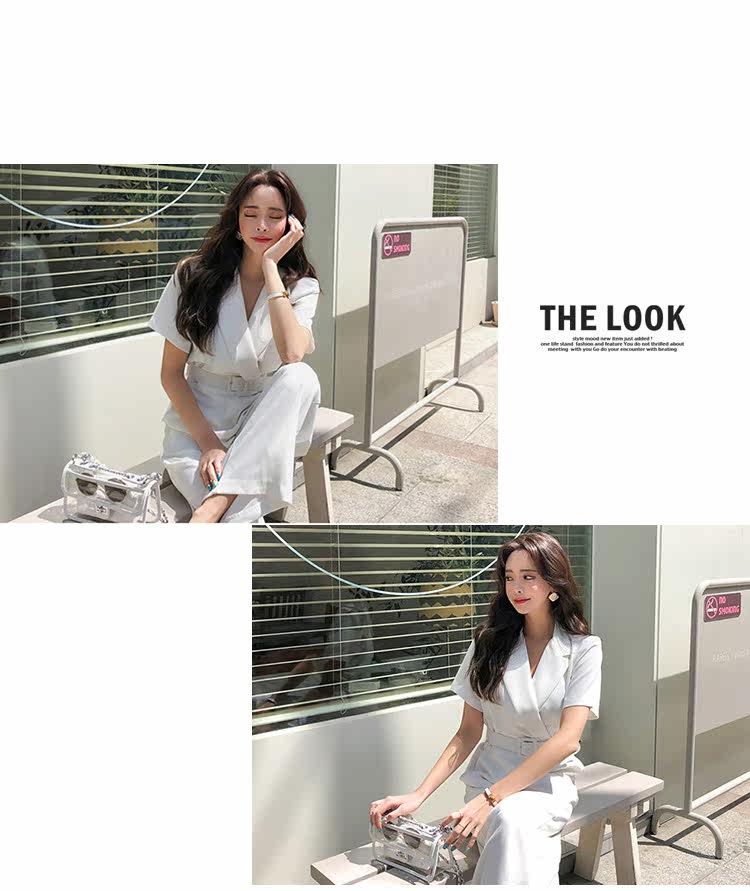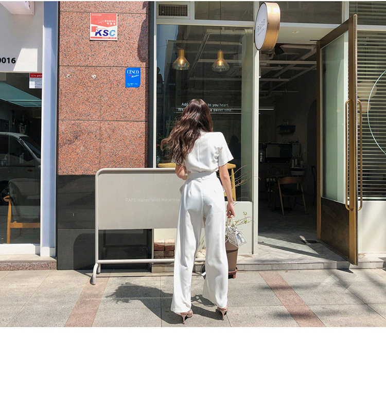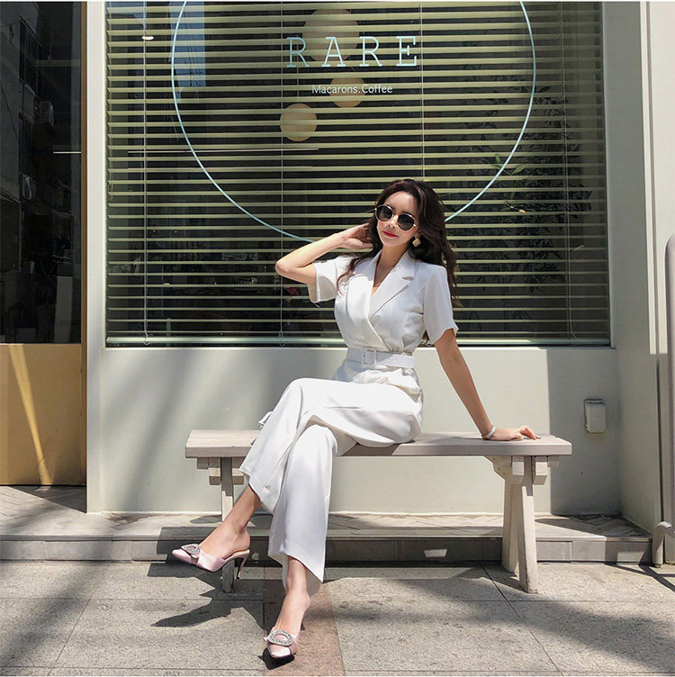 Женский офисный комбинезон с отложным воротником и короткими рукавами и поясом, белый комбинезон с широкими штанинами для работы, AQ186, 2019