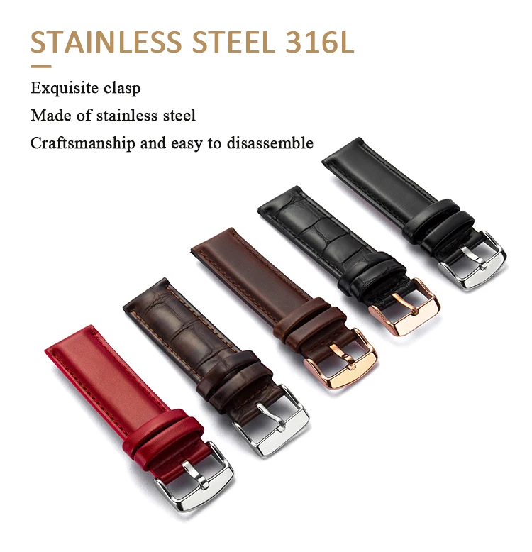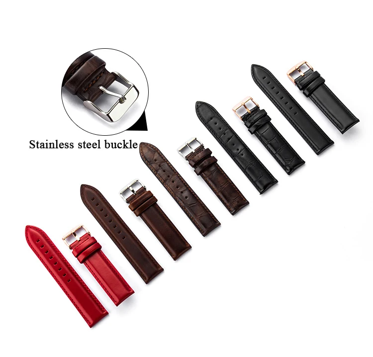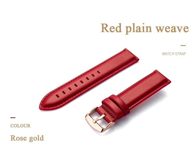 Название продукта: Пряжка из нержавеющей стали с ремешком из телячьей кожи Материал: верхний слой из телячьей кожи Материал пряжки: Пряжка из нержавеющей стали Интерфейс ремешка: плоский прямой порт с пружинным стержнем Размер: 12 мм, 13 мм, 14 мм, 18 мм, 20 мм Длина: Длинная сторона: около 125 мм. Короткая сторона: около 75 мм (без пряжки). Ремень Цвет: красный Цвет пряжки: серебристый, розовое золото Посылка включает в себя: Ремешок для часов × 1 шт. Установка инструменты × 1 шт.