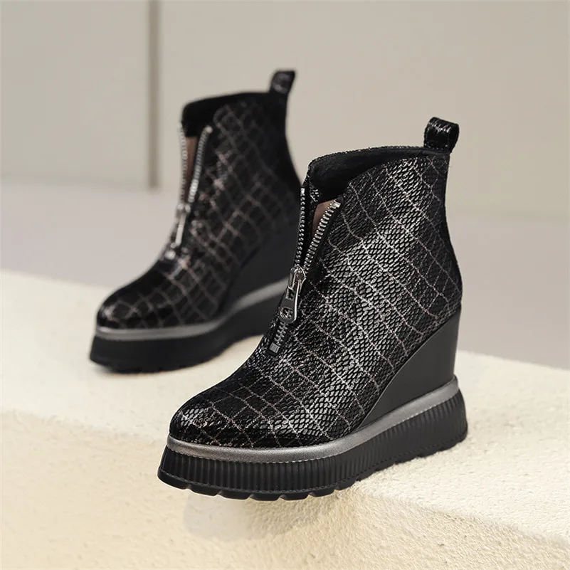 ANNYMOLI/осенние ботильоны; женские полусапожки из овечьей кожи на платформе и танкетке; обувь на очень высоком каблуке; женская зимняя обувь