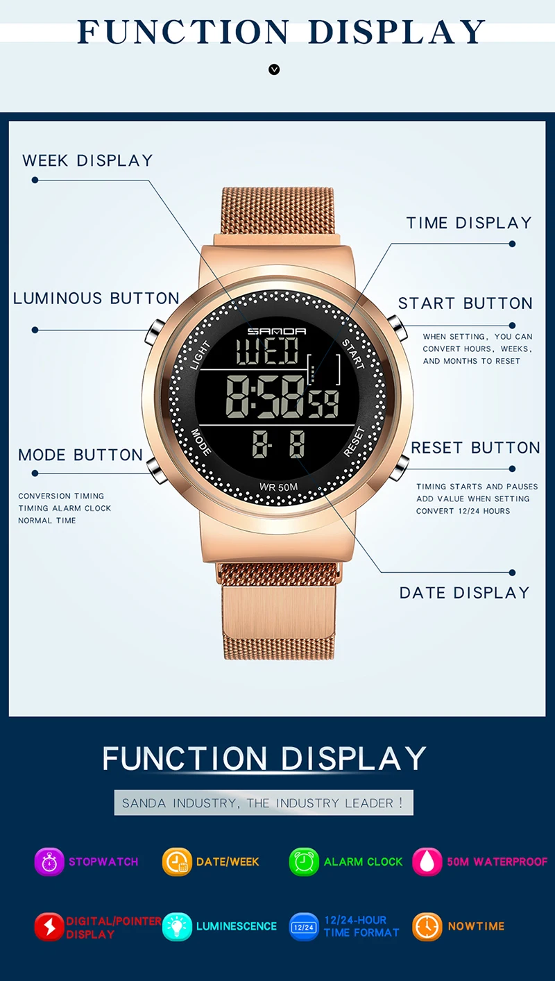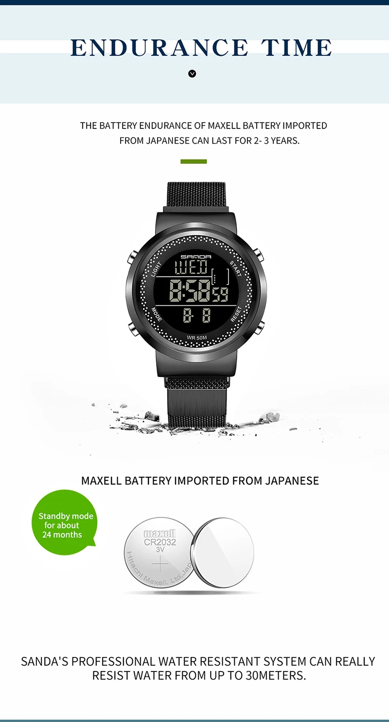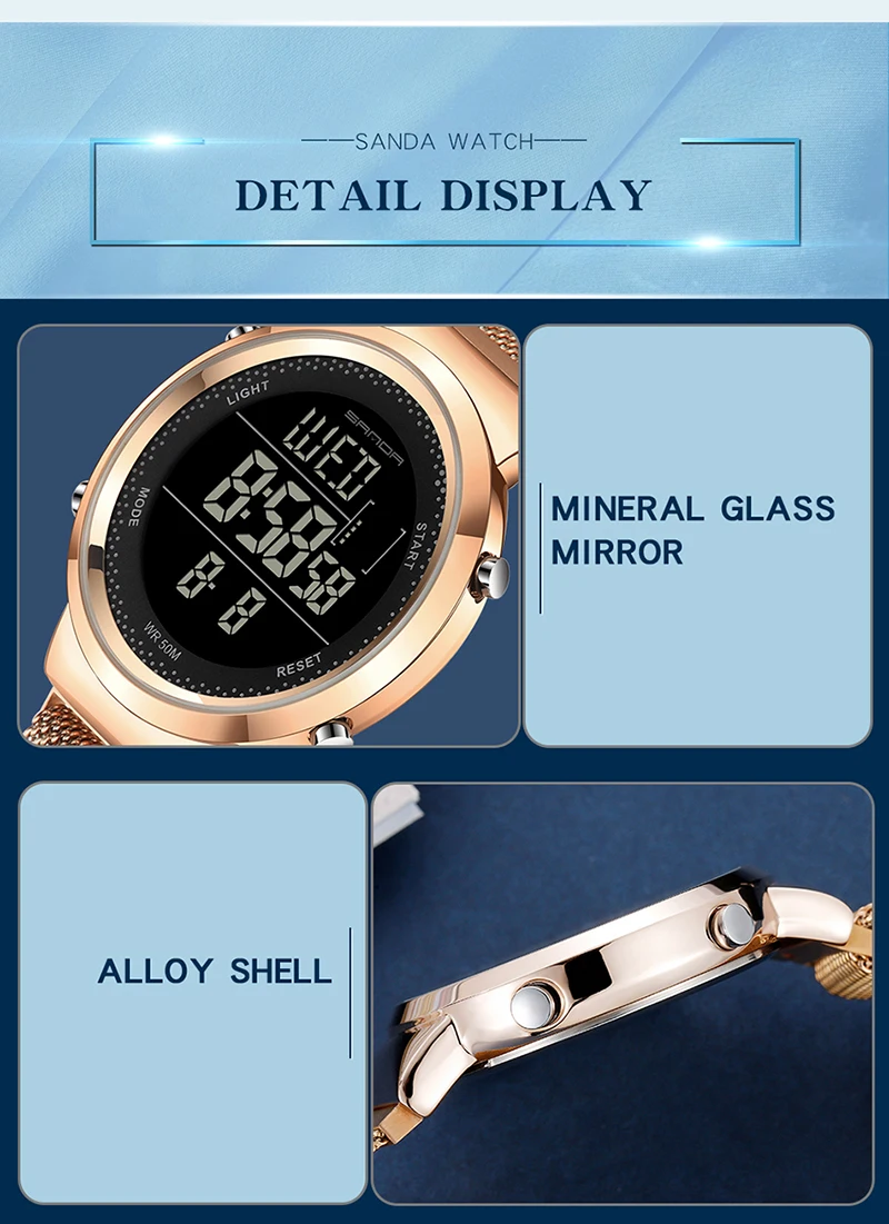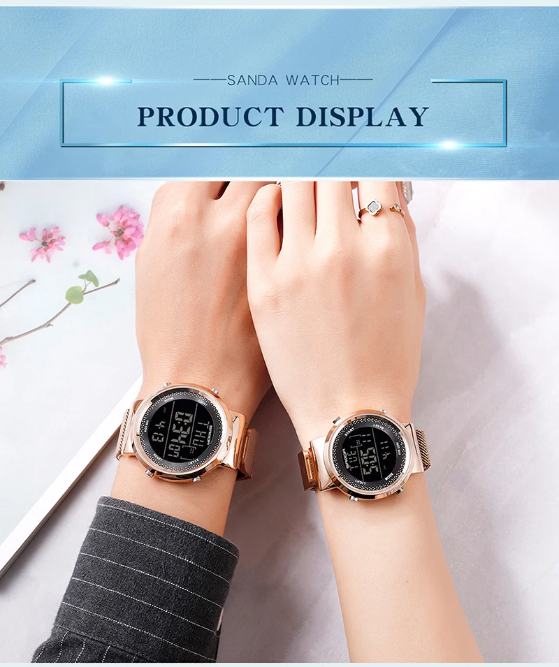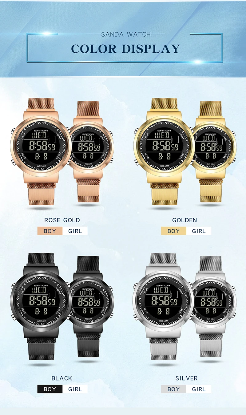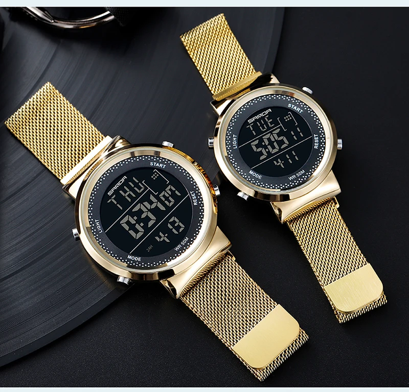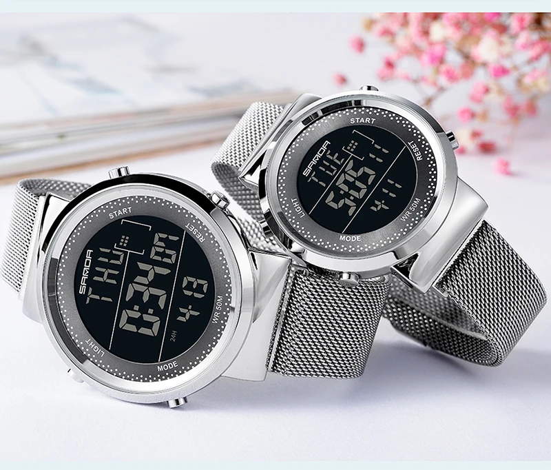 Sanda мужские часы, женские модные цифровые часы, дышащие Ультратонкие светодиодные водонепроницаемые электронные часы для пар, спортивные часы