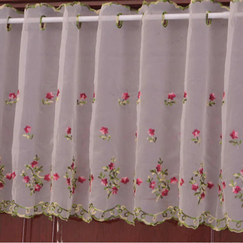 Кружево пасторальный вышитые цветочные Короткие Вуаль шторы перспектива пелмет балдахин для кухни Ванная комната Крытый балкон эркер