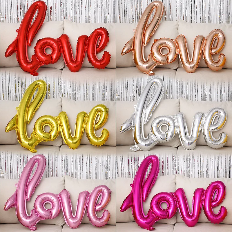 1 шт., свадебные реквизиты с надписью LOVE, воздушные шары из фольги цвета розового золота