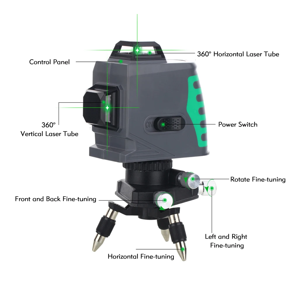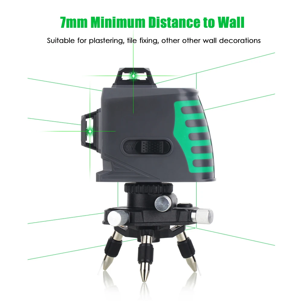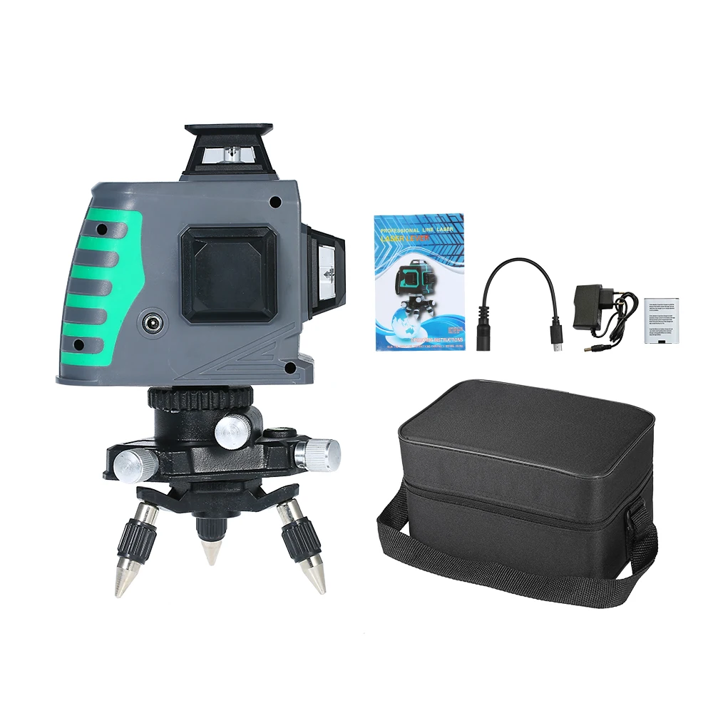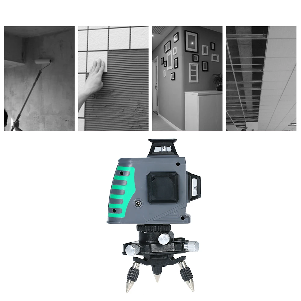 Лазерный уровень 3D 12 линий с лазером высокой яркости и дальним расстоянием проекции, может излучать 360 градусов видимые лазерные лучи как по горизонтали, так и по вертикали.