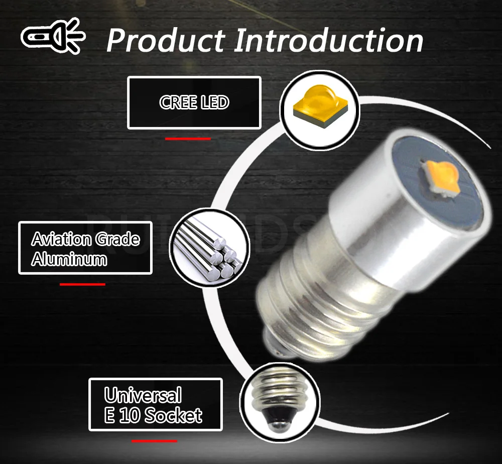 DC3V AC/DC 4,5 V 6-30V белый желтый E10 C'ree светодиодный обновленная лампа 3W аварийный фонарь светильник светодиодный Предупреждение велосипед maglite Лампы