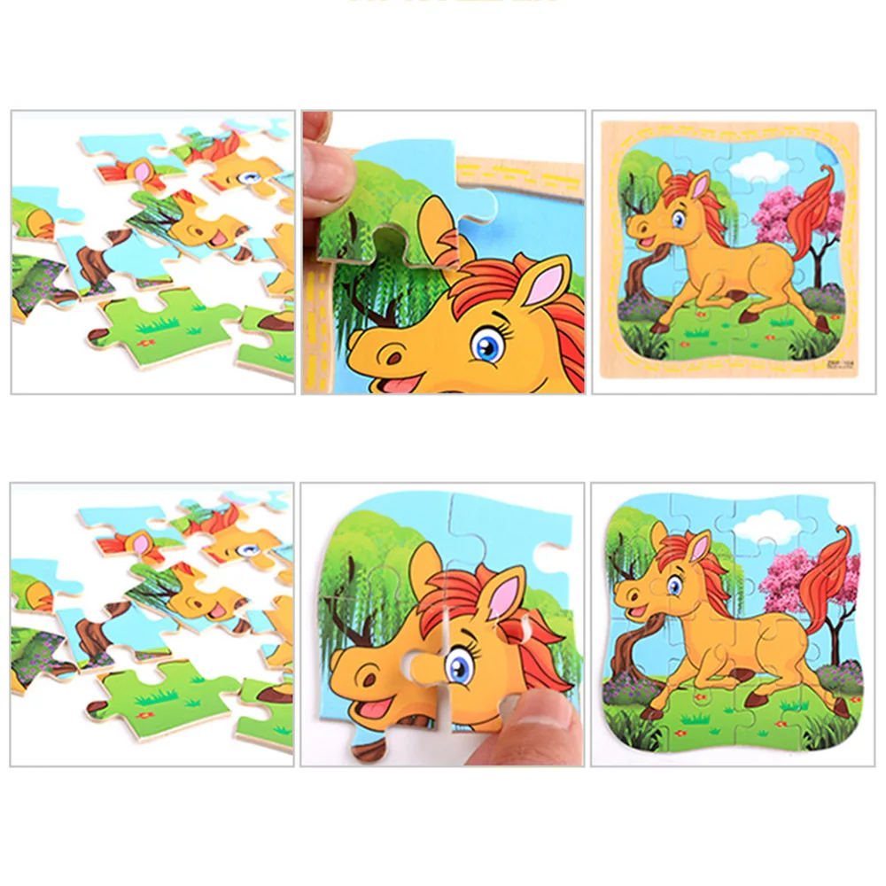 16 шт., деревянные головоломки, игрушки для детей, Обучающие Развивающие игрушки, Мультяшные животные, транспортное средство, головоломки, игрушки для детей, подарки