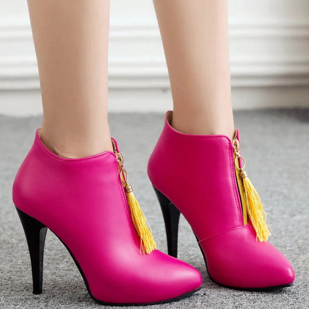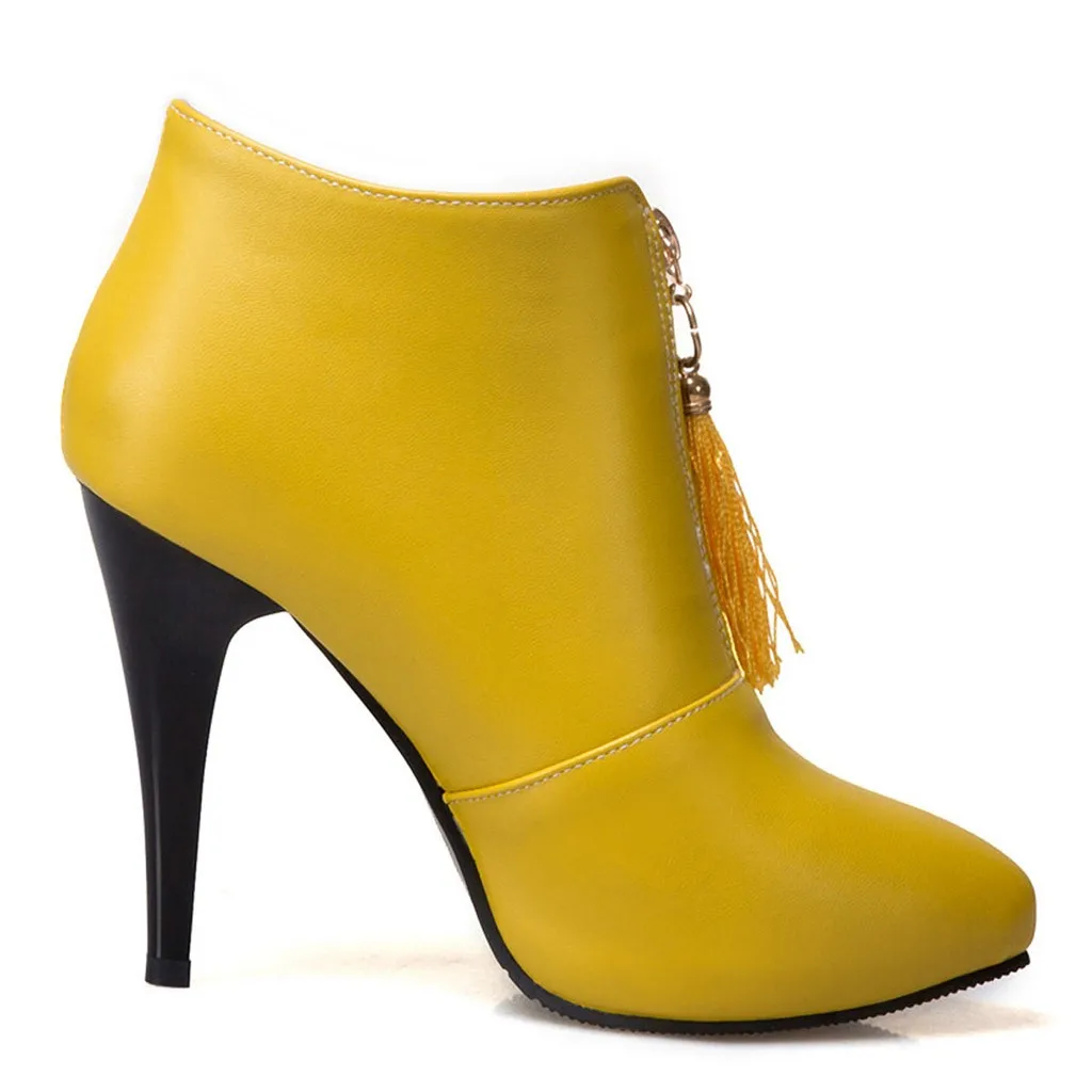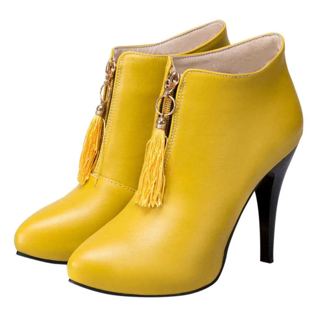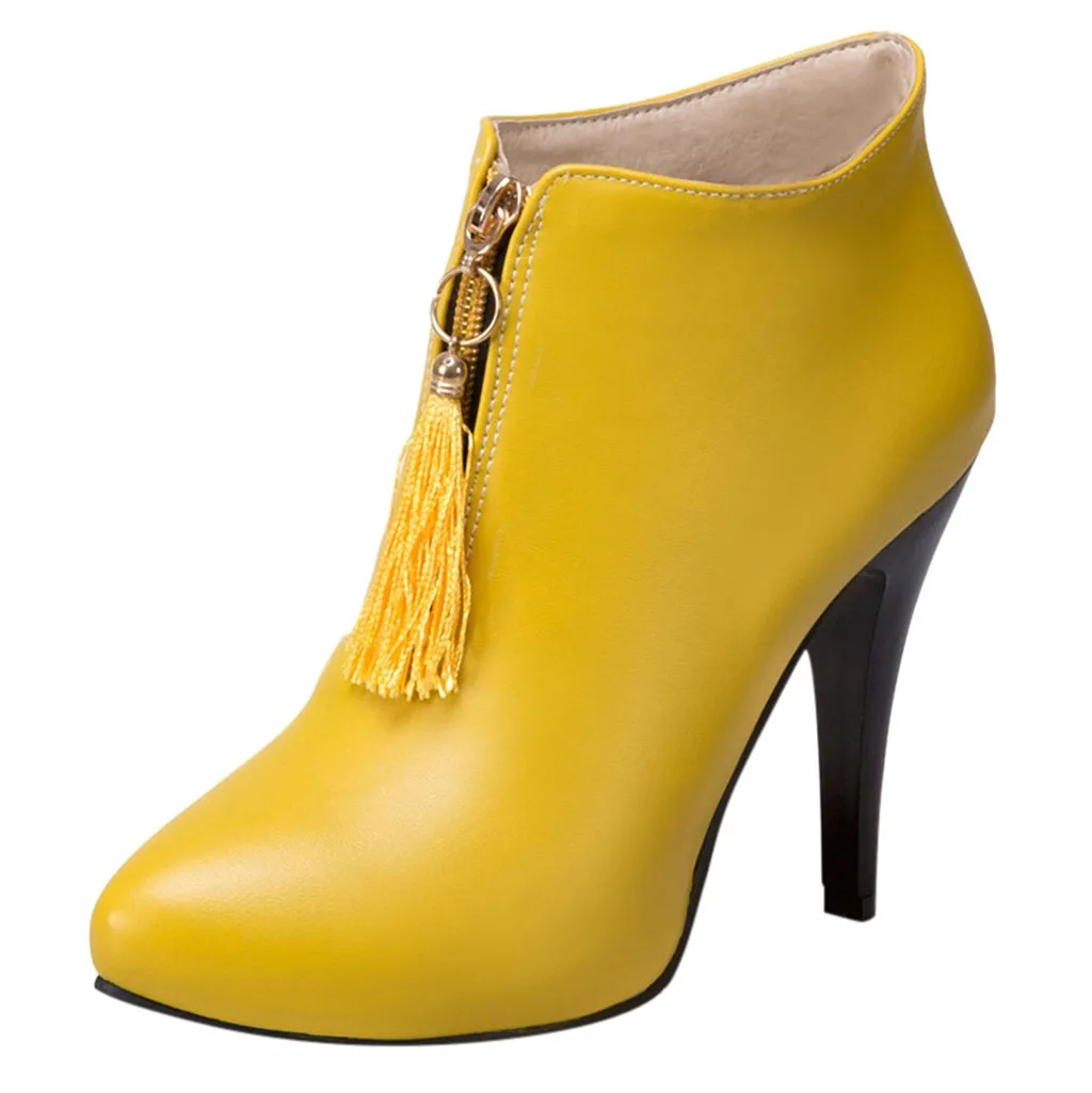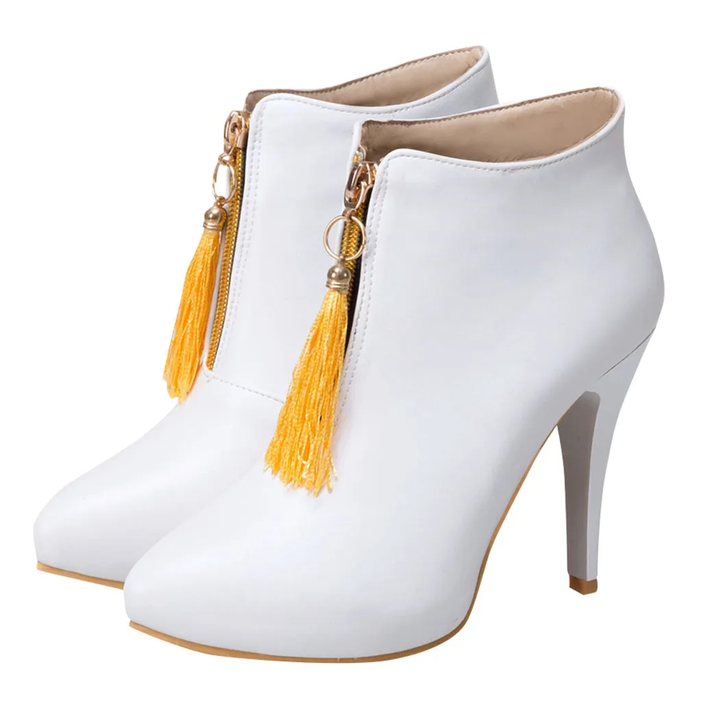 Зимняя женская обувь ботинки на высоком каблуке с бахромой в стиле ретро ботинки на молнии спереди