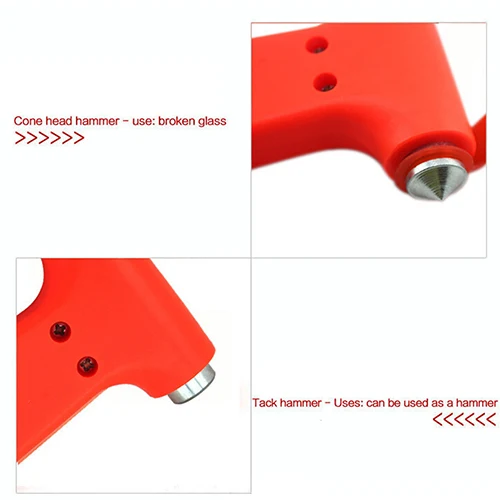 Он имеет металлический молоток для разбивания окна вашего автомобиля в чрезвычайной ситуации.