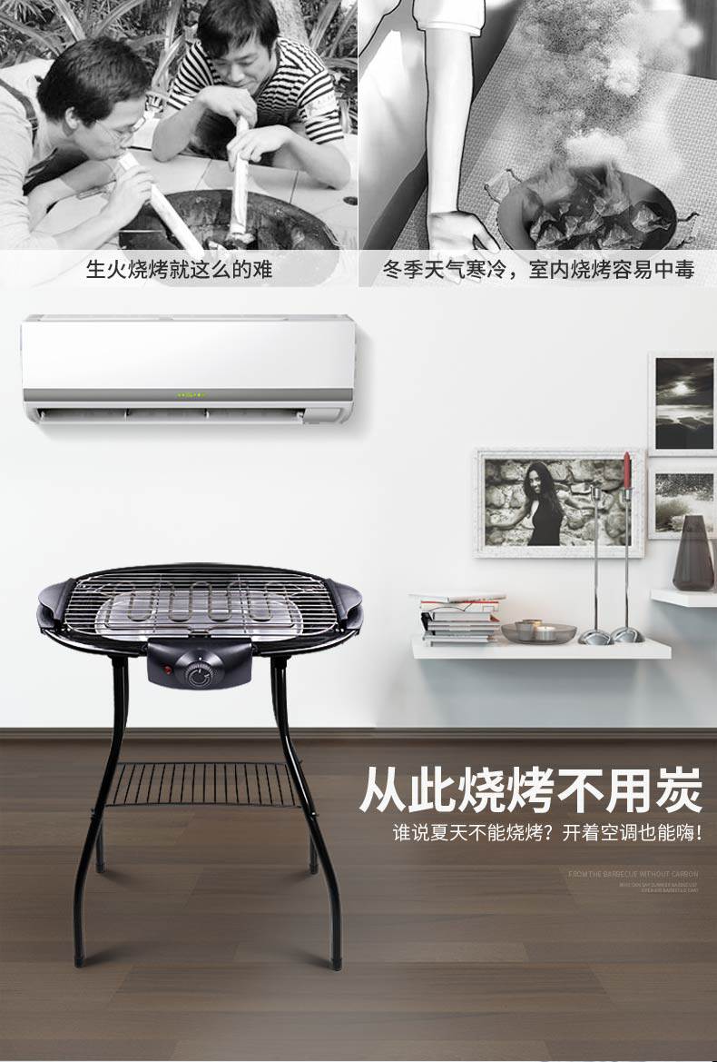 Электрический бездымный гриль с духовкой, штатив-стойка, съемная полка для барбекю в помещении