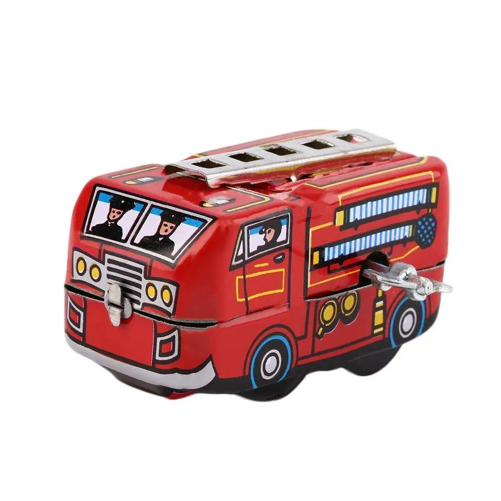 Превосходная оловянная игрушка пожарная машина, с работающим заводным двигателем